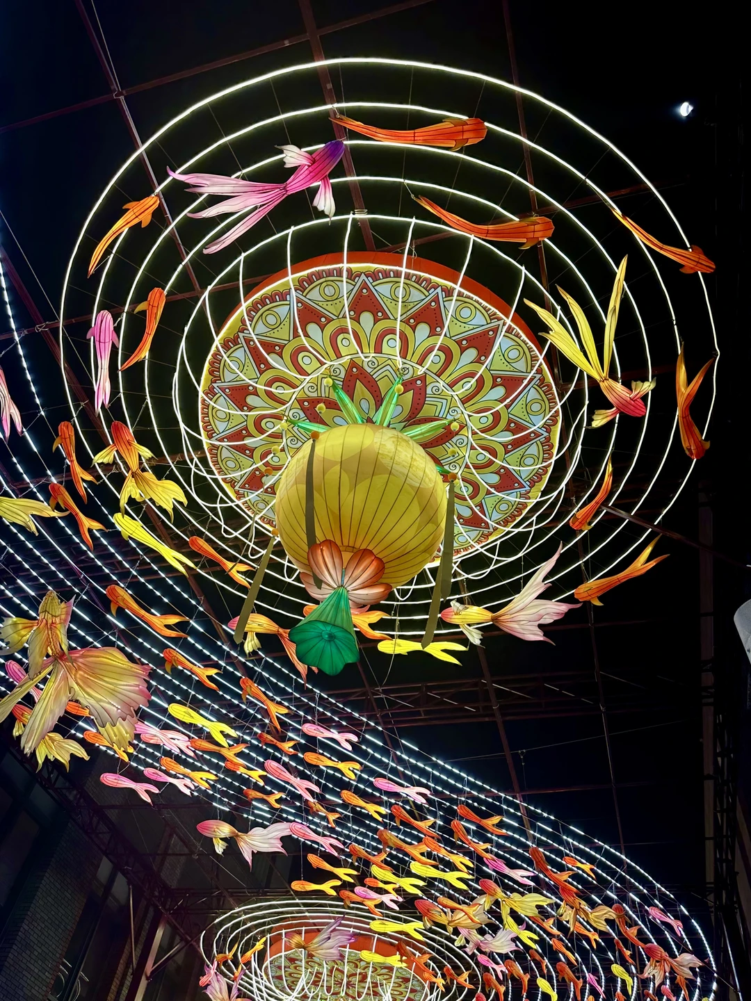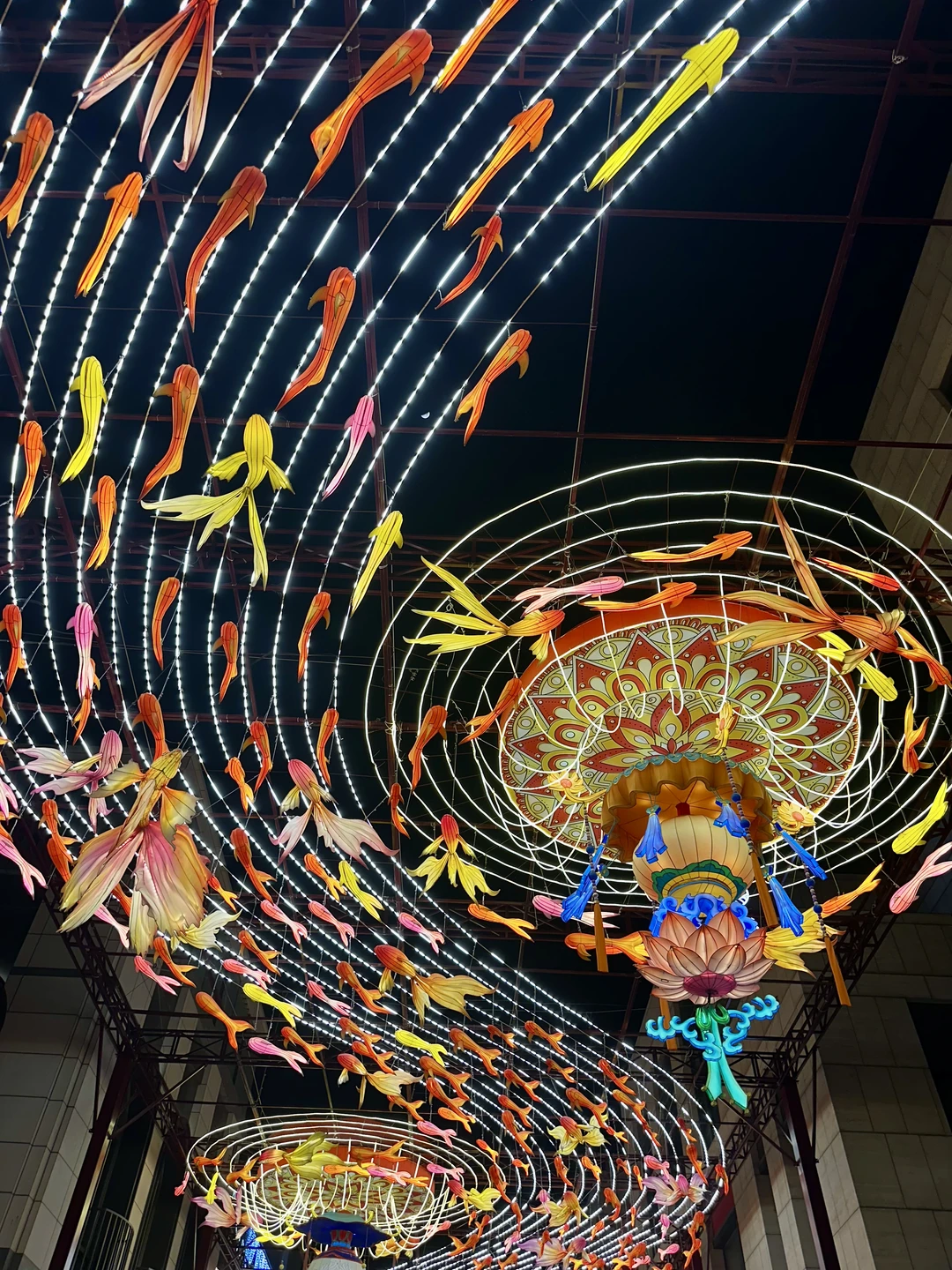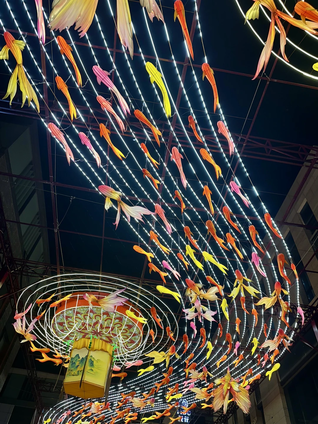 在北京前门大街偶遇了这条「会发光的鱼灯长廊」,真的像闯进了课本里的老北京年味!