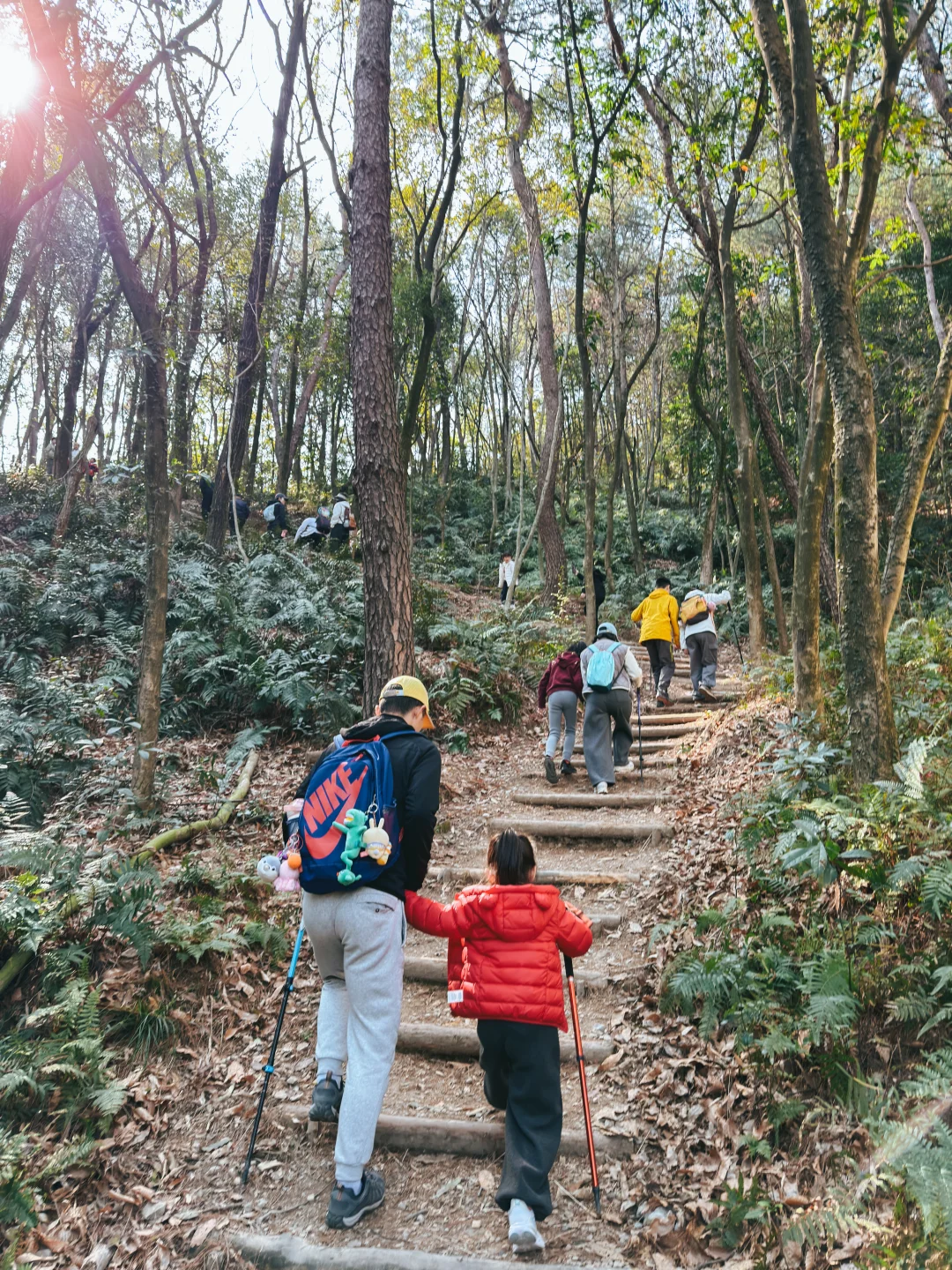 [向右R]登山部分的路况主要是土木结构的台阶,海拔最高120米左右,有点就是比较简单,但因为山不高,观景的视线肯定也是有打折的,远眺景色不及附近的白石仙枰,作为短时间的户外活动倒是极好的