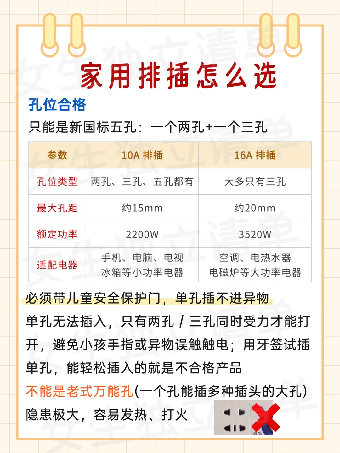 🔺孔位合格:仅选新国标五孔(带儿童保护门,单孔插不进),不选老式万能孔