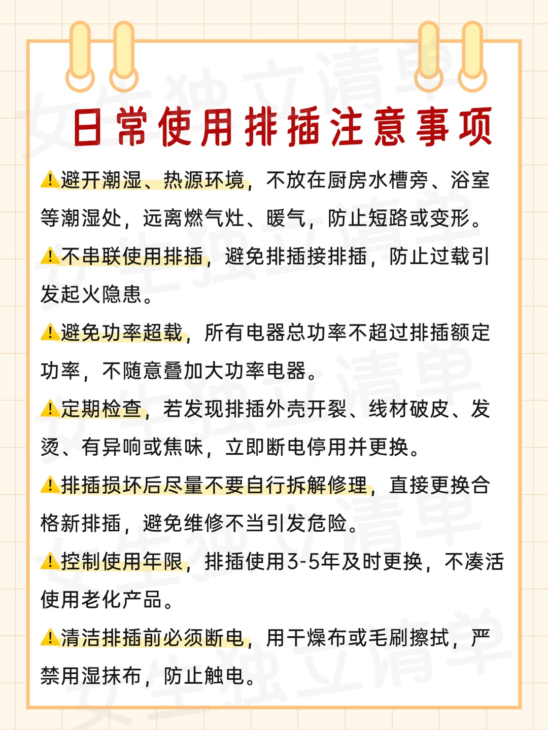 3️⃣避免功率超载,所有电器总功率不超过排插额定功率,不随意叠加大功率电器