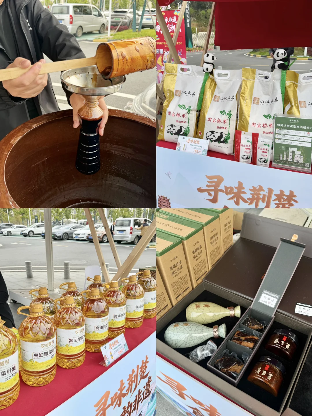 市集里的美食区直接戳中味蕾!蔡林记的重油烧麦现做现吃,皮薄馅足超香;贺胜桥土鸡汤鲜掉眉毛,新农凉拌牛肉口感绝了,还有麻辣蒜蓉小龙虾、湖北特色青团,每一个摊位都能试吃,边逛边吃幸福感拉满!非遗展示区也超有看点,百布堂的织布机和天然染色体验亲手玩了超有趣,黄滩酱油传承人现场展示制作工序,国宝桥米、农谷壹号还有超多满赠福利,买特产超划算~