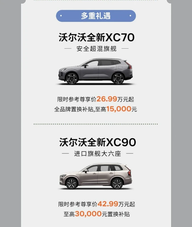 - 全新XC70:26.99万起,全品牌置换至高15,000元