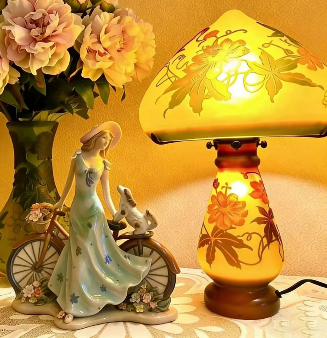这款陶瓷台灯的造型真的美到心坎里! 花朵元素细腻生动,摆在书桌上瞬间提升氛围感~ 温润的陶瓷材质搭配琉璃灯罩,光线柔和又温馨。 日常送礼或者自用都超合适,朋友看到都问链接呢!