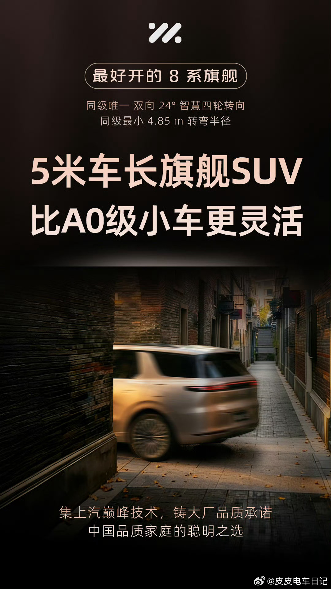 驾驶质感,一直是上汽传统优势之一。现在很多电车死磕零百加速,但真正影响日常体验的,从来不是那一下推背,而是车好不好开、家人坐着晕不晕。LS8的4秒级加速足够随叫随到,但真正出彩的,是这套和LS9同源的灵蜥数字底盘3.0带来的“稳”和“顺”:过弯能精准抑制侧倾、颠簸路面滤震到位,大幅降低全家出行的晕车感;同级唯一双向24°智慧后轮转向更是刚需,更首发了同级独有的全线控四轮转向系统,路口掉头、钻地库窄弯一把就过,完全没有大车的笨重感,比不少小车都灵活,作为同级8系旗舰,驾控底气直接拉满。