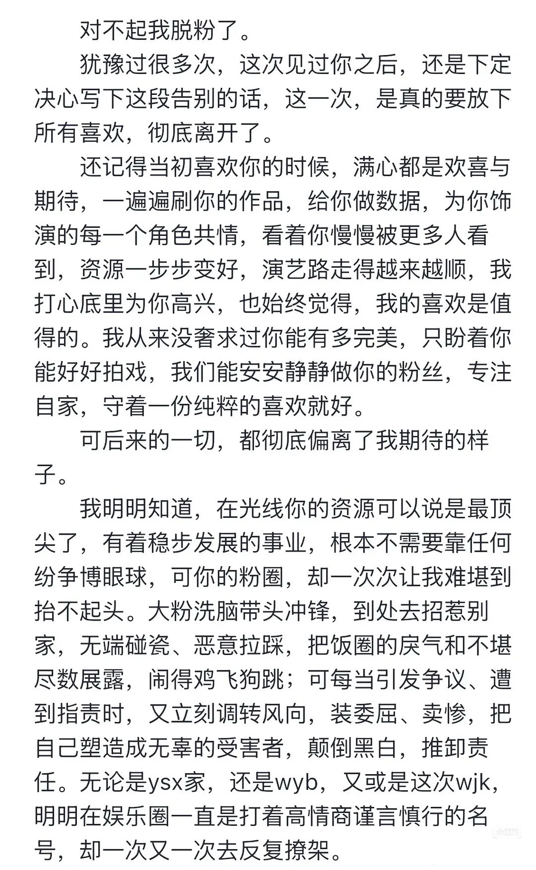 丁禹兮氪金粉丝脱粉,发了好长一篇小作文…
