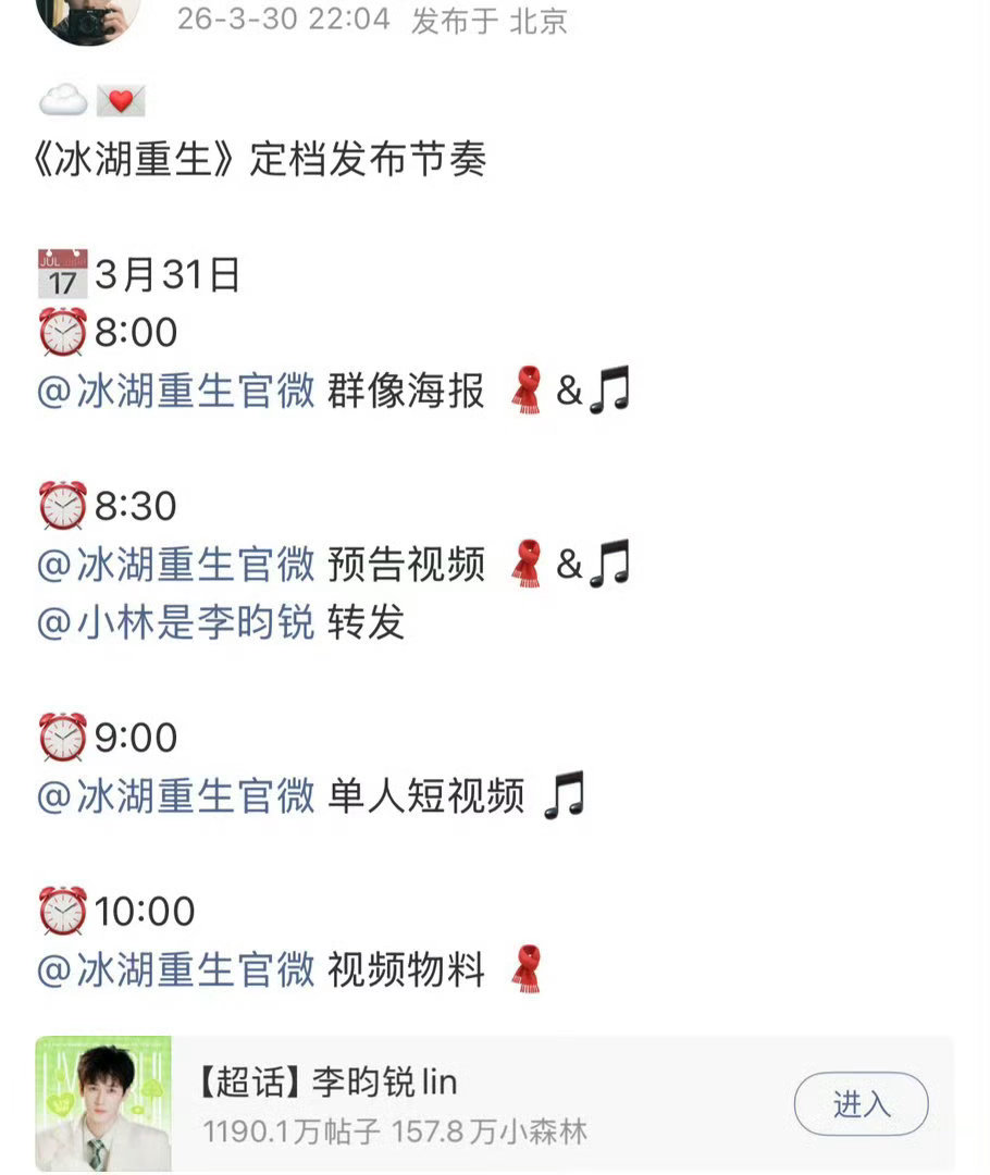 冰壶重生物料发布节奏冰壶重生发布节奏李昀锐、黄杨钿甜、张康乐主演的《冰湖重生》定档发布节奏🈶