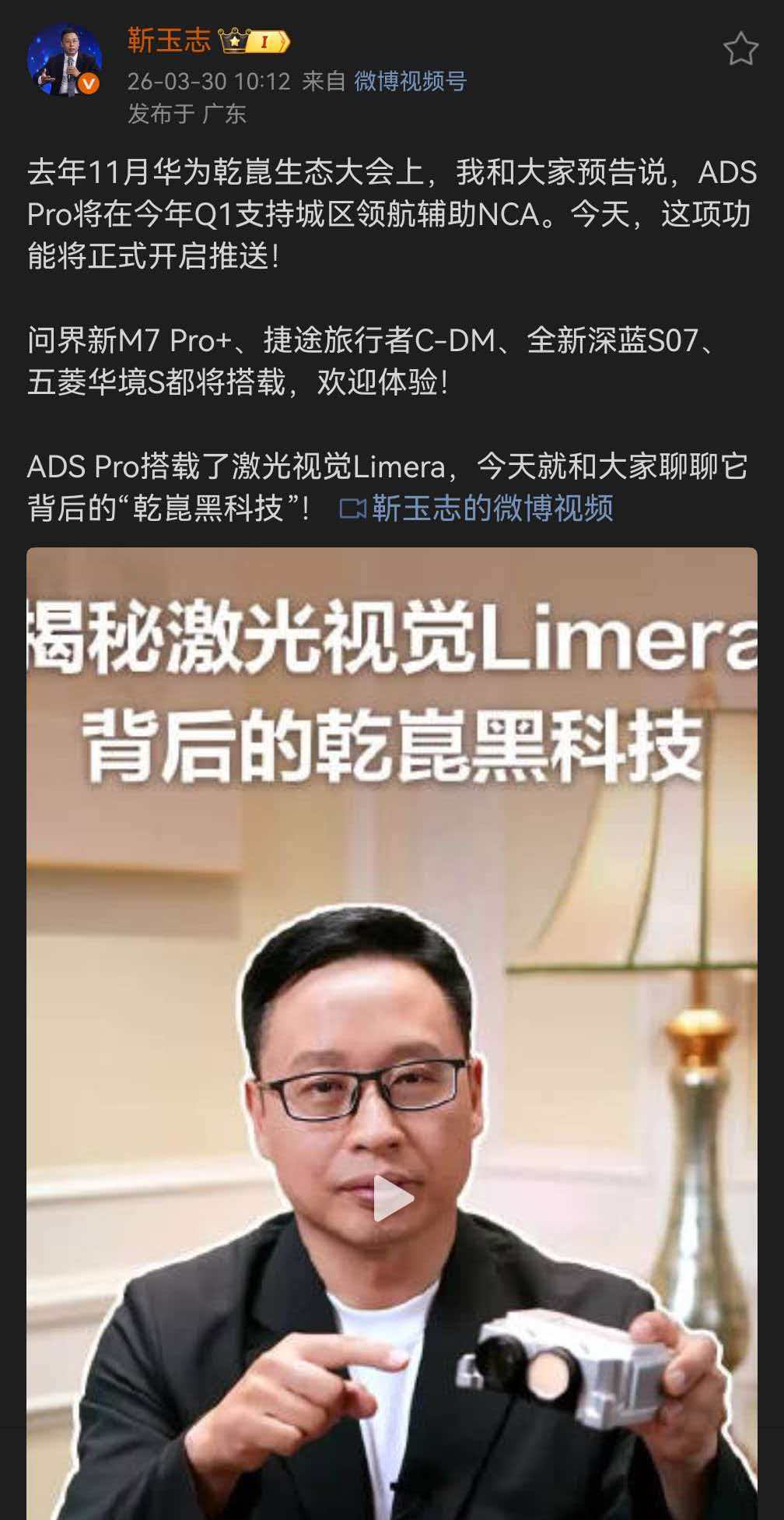 不知道大家还记不记得华为乾崑智驾的 ADS Pro 版本,也就是那个搭载舱内激光雷达的版本。
