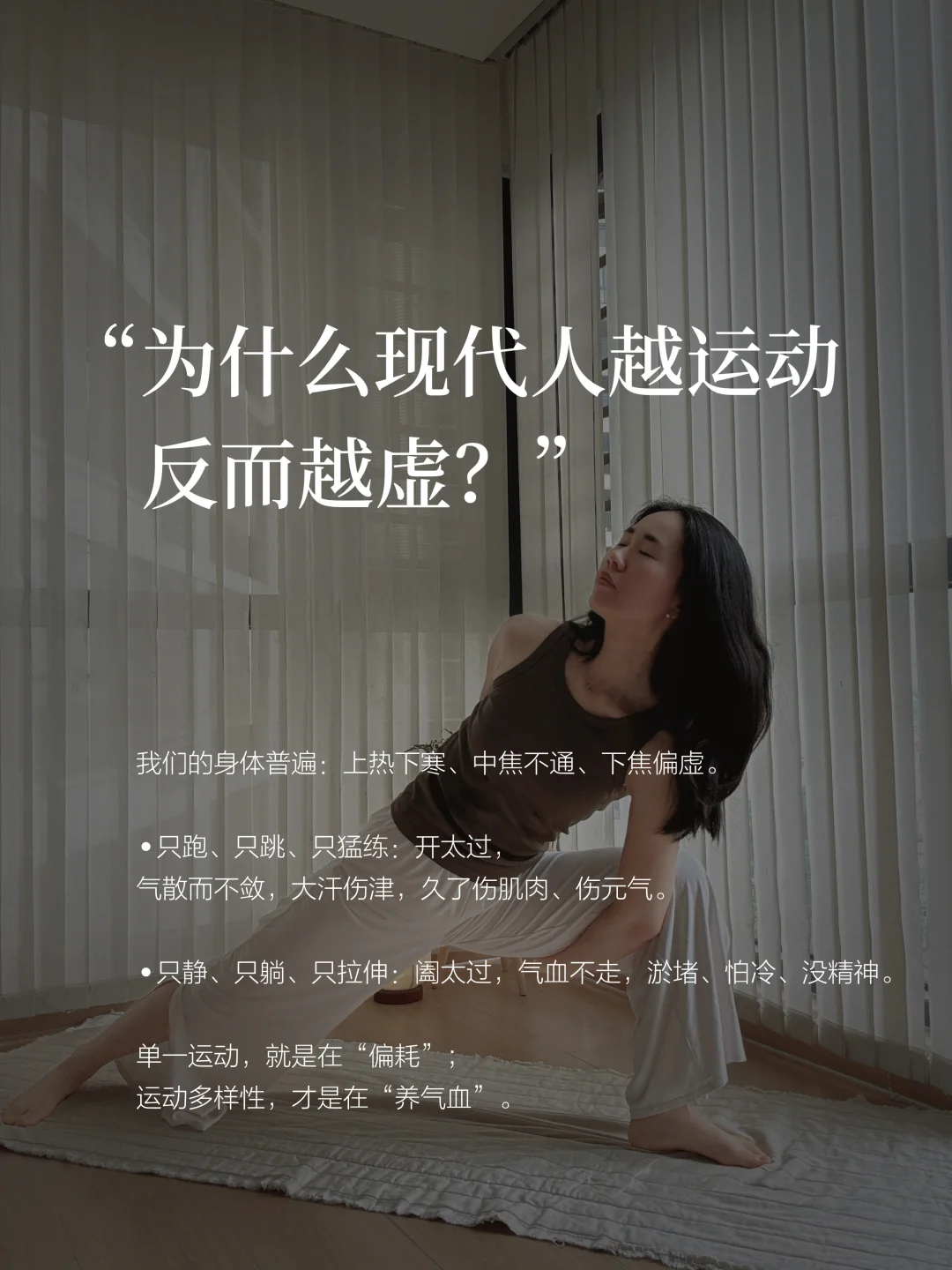 为什么别人运动紧致红润,你一跑就累、脸黄、肉松、越动越虚? 不是你不行,是90%的人都在瞎运动:只开不阖、只耗不养,气血越练越空。 运动不是消耗,是给气血“疏通+储存+循环”。 开有度,阖有底,动静相宜,气血才会慢慢养满, 由内而外亮、紧、暖、有神。