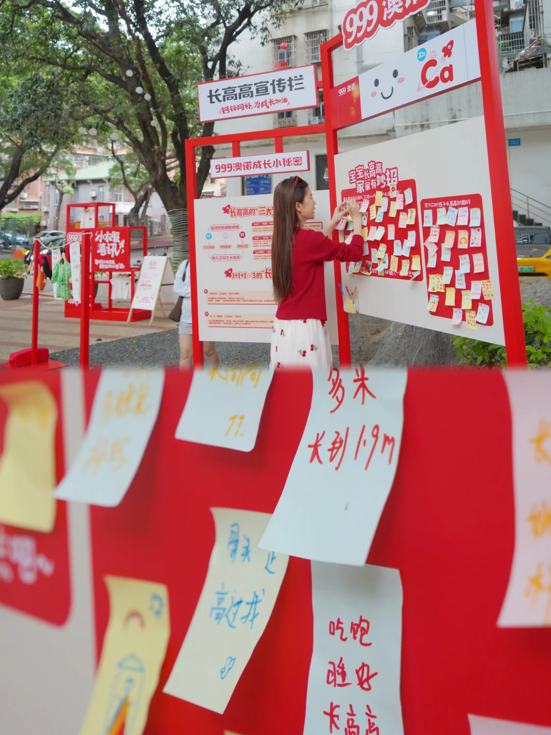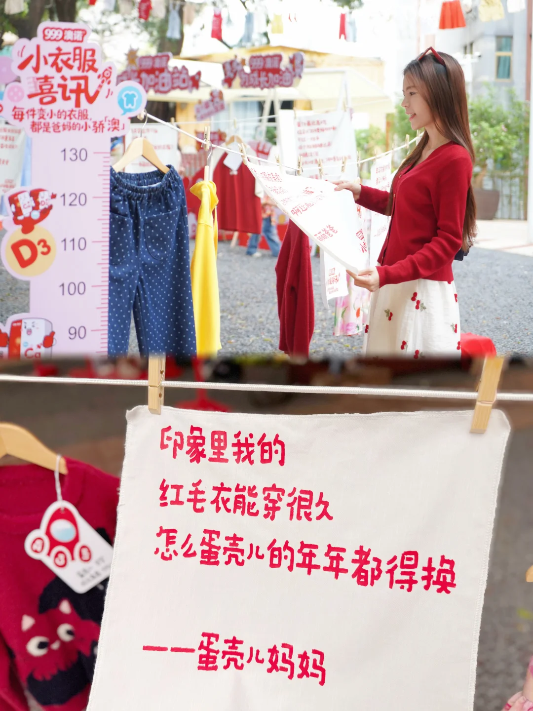 现场全是“变小的衣服”——小婴儿的连体衣、幼儿园的园服、小学的校服……每件都挂着标签,写着爸爸妈妈对衣服小主人们的寄语,好有爱❤️