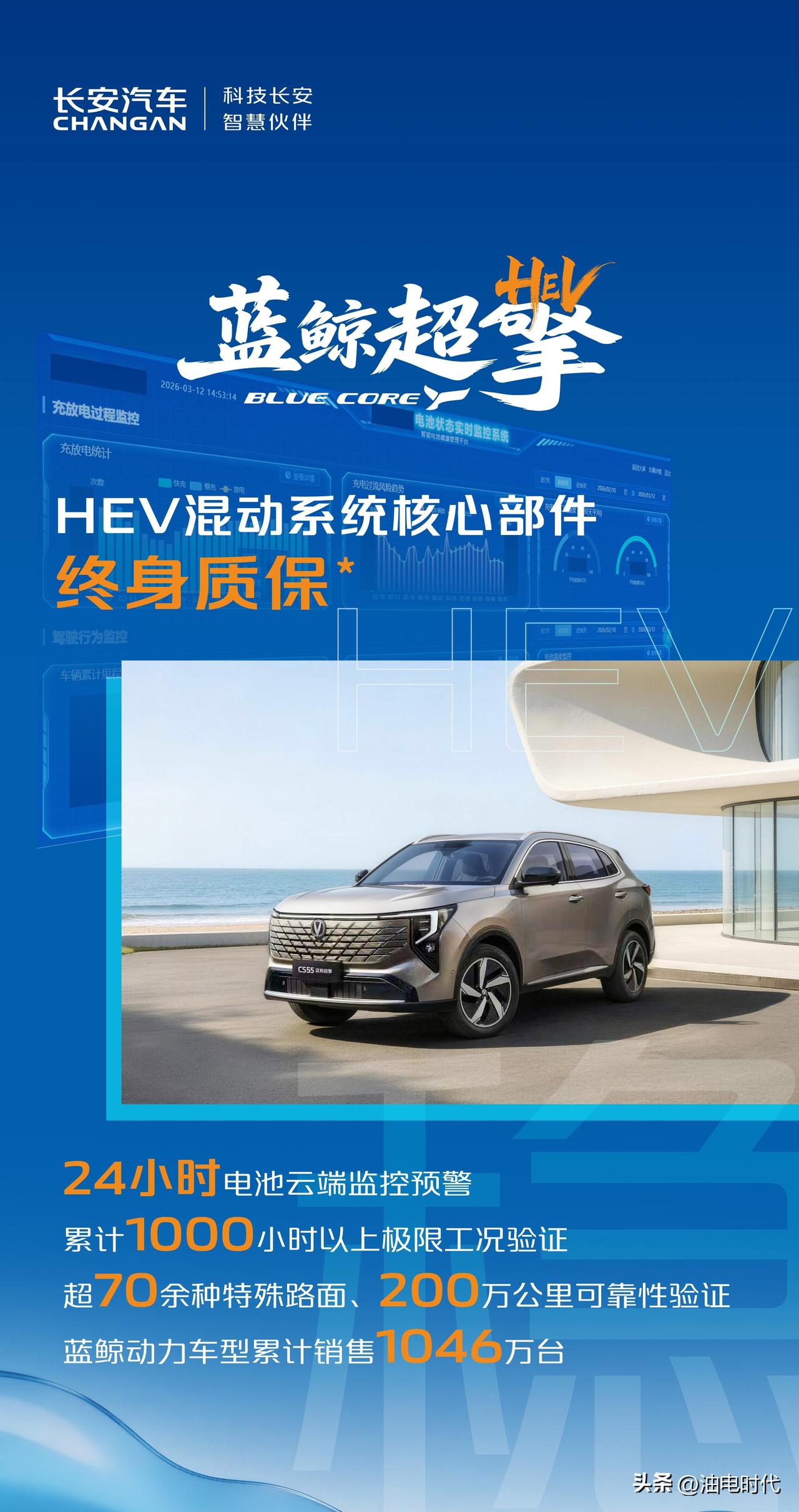 长安蓝鲸超擎混动总结 一、发布会核心定位 3月30日晚,长安在重庆举办蓝鲸超擎混动全球发布会,主题:全球混动 中国方案,宣告蓝牌燃油车城区油耗正式进入2L时代。 二、核心技术(iDE‑H深度电动化智能油混架构) - 研发投入:6年、千名工程师、163项核心技术、超20亿元 - 四大核心:500Bar超高压直喷混动发动机、高磁通高功率电驱、高性能高安全电池、AI云智控 - 技术突破 - 500Bar超高压直喷(全球首发,丰田250Bar的2倍)+16:1压缩比,发动机热效率近45%,高效区占比56.3% - 电驱:行业首发拓扑,最高效率98.1%,最大功率180kW - 电池:50C放电倍率、80kW峰值放电,24小时云端安全监控 - AI云智控:毫秒级路况识别,油电智能无感切换 三、核心性能(省/劲/静/可靠) - 油耗(城区实测) - 蓝牌轿车:2.98L/100km - 蓝牌SUV:3.98L/100km - 动力 - 起步响应0.29秒 - 0‑60km/h加速3.59秒 - 油电并联,爬坡/超车动力随叫随到 - 体验:低速纯电驱动,静谧平顺;高速发动机直驱,高效省油 - 优势:无需充电,加油即跑,无续航/充电焦虑 四、首搭车型(HEV,蓝牌) - 第四代CS75PLUS HEV(首发亮相):1.5T混动,综合油耗4.67L/100km - 逸动HEV:1.5L混动,综合油耗3.8L/100km - CS55PLUS HEV:1.5T混动,综合油耗4.68L/100km - UNI‑V HEV:1.5T混动,综合油耗4.28L/100km 五、战略目标 - 2026年:实现10万台混动车型销量 - 定位:为全球7000万燃油车用户提供中国混动方案,改写全球混动格局。 除了iDE-H,后面也还会有插混/增程,可能叫iDE-P/R,说实话长安汽车现在的新能源混动产品,包括插混、增程,都在用蓝鲸发动机,但是缺少一个统一的技术标签,启源Q07用的叫新蓝鲸智慧3.0,深蓝S07用的叫深蓝超级增程/原力智能增程,阿维塔07的叫昆仑增程[泪奔] 以前燃油车叫蓝鲸发动机可以,但是现在新能源汽车如何打出自己的标签很重要,要让消费者一听就知道你整个动力品牌架构和体系。