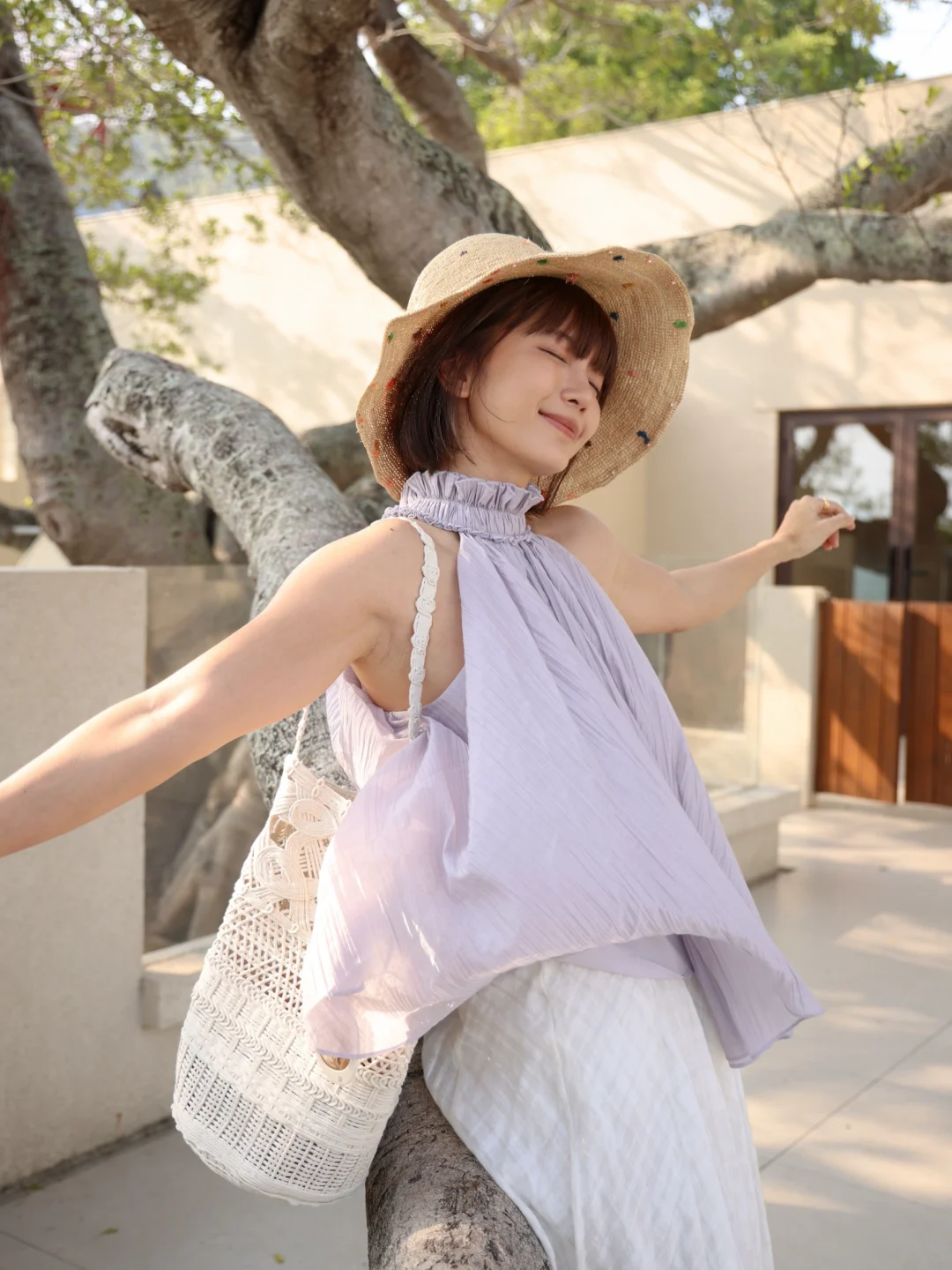 前几天拍东西订了一晚海边的民宿,原本心系工作盘算了一路拍摄计划,下车看到阳光落在海面上,美到原地呆住愣了几秒,春日油画一样蓝绿渐变,海浪和海风交替着在耳边asmr。住的地方也可爱,一棵年纪很大榕树变成了房东,拍视频的时候,榕树叶片在头顶晃动,影子在脚下跳摇摆舞,我在镜头里忍不住一直在笑,工作怎么可能在哪完成都一样呢。