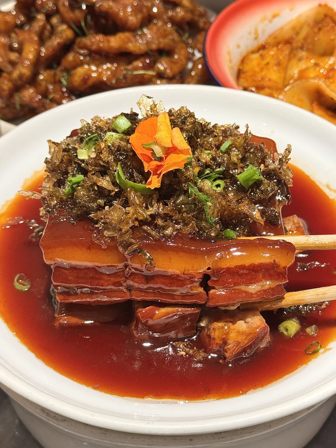 感谢本地人带路!地铁口附近的鲁菜老店! 离栈桥、五四广场都不远~外地朋友来青岛第一顿基本都来吃这,性价比也很高,盲点一桌都没踩雷!! ✔️柠檬叶糖醋里脊肉,外酥里嫩,配上柠檬叶丝好吃上头! ✔️黄米酪,糯叽叽的搭配桂花酱好好吃啊!!! ✔️流汁大宽粉,爽滑宽粉配上秘制酱汁趁热吃好满足! ✔️脆皮炸丸子,鲜香软脆,一口一个太香了!!! 还有:当家肉、椒麻小海鲜、全家福水饺🥟每次都要点……巨巨巨好吃!!! 建议来青岛旅游的姐妹们记一下这家📍33号大院·青岛本帮菜(青岛旗舰店)