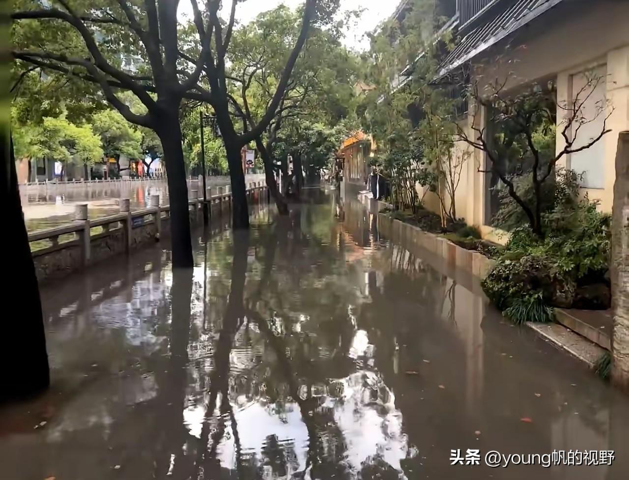 广州天河区猎德涌,此次的突降暴雨竟然让河涌水位上涨的那么厉害,几乎淹没了平时人们休闲消费的场所。此处位于地铁猎德站旁,旁边有天娱广场和天德广场,平日里无论是夜晚还是白天,都有不少白领上班族和市民在此观光休闲。但一场暴雨下来,水位上涨完全改变了平日里的模样。
