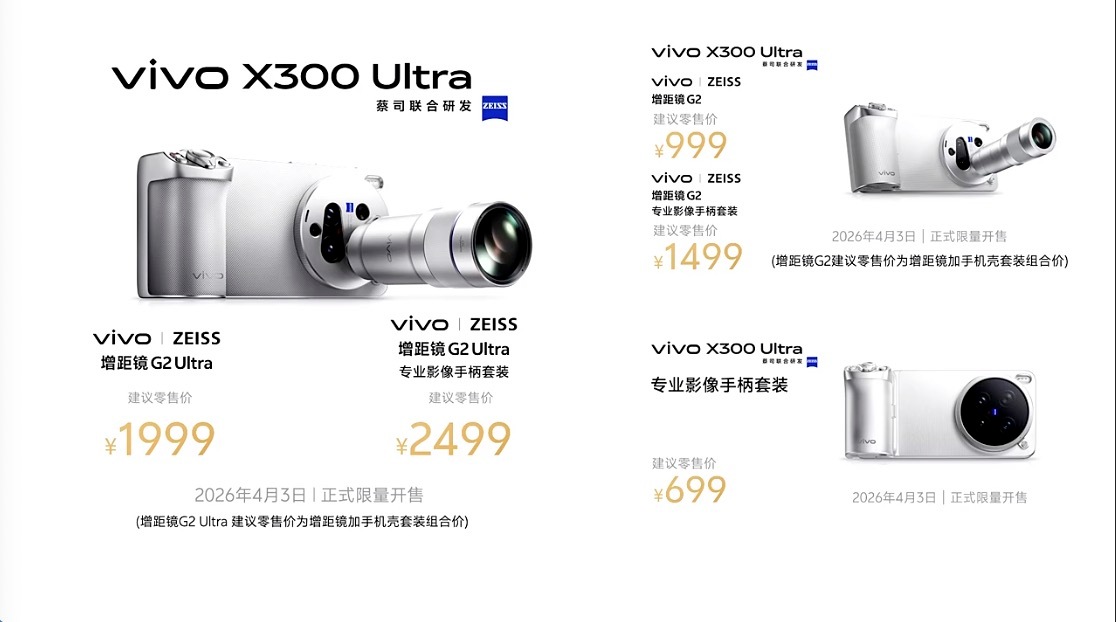 vivo X300 UItra专业V单售价公布了,机圈V单vivo X300 Ultra售价6999元起,还有丰富摄影配件组合,移动影像产品力实锤了,估计接下来演唱会的出场率会奇高,400mm增距镜演唱会拍摄体验注定是无与伦比的。