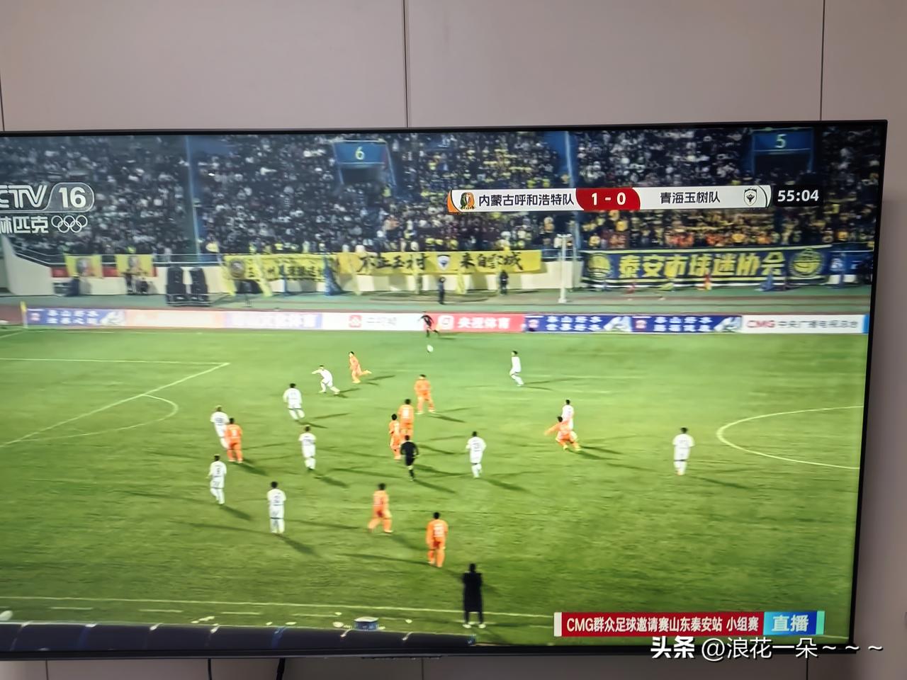 不得不说啊,现在足球氛围真好啊! 你看看这奥林匹克CCTV16频道都在直播CM G群众足球邀请赛山东泰安站小组赛。 不仅仅是直播,而且我看看台上这球迷坐的满满的,看来这泰安球迷也不少啊,真给力。 这应该算是最业余的比赛了吧。而且泰安文旅也会搞,我看着双方球员穿的球服上面的广告都是泰安的广告。真不赖!点个赞![赞]