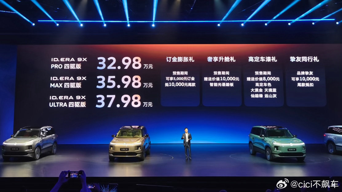 大众ID.ERA 9X预售32.98万起,在合资里面性价比是真可以呀5.2米大六座,双腔空悬+后轮转向EA211增程+65.2kWh电池,纯电续航400km、综合1600km,亏电油耗6.27L无图NOA+激光雷达,德系底盘+六维电池安全30多万买这样一台旗舰增程SUV应该说很有吸引力了32.98万元起闭眼入大众9X