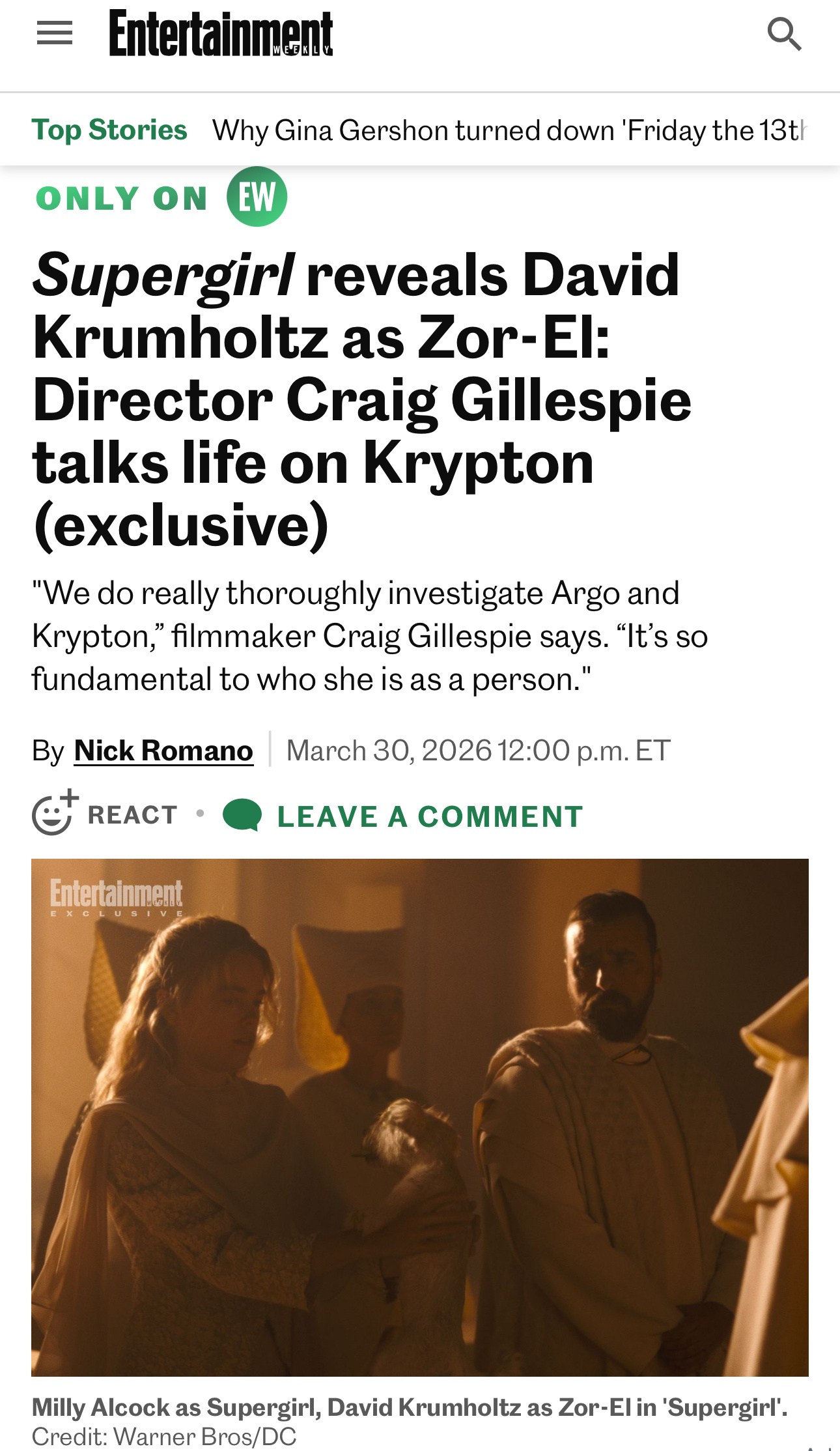 影片相关 《娱乐周刊》放出DCU电影超级少女 的几张全新剧照,全新预告明日见。🎬本片由克雷格·吉勒斯佩执导,米莉·阿尔柯克饰演超级少女卡拉,杰森·莫玛饰演暴狼罗伯,伊芙·雷德利饰演少女露赛,马提亚斯·修奈尔饰演反派克瑞姆,安娜·诺盖拉担任编剧,定于今年6月26日上映。