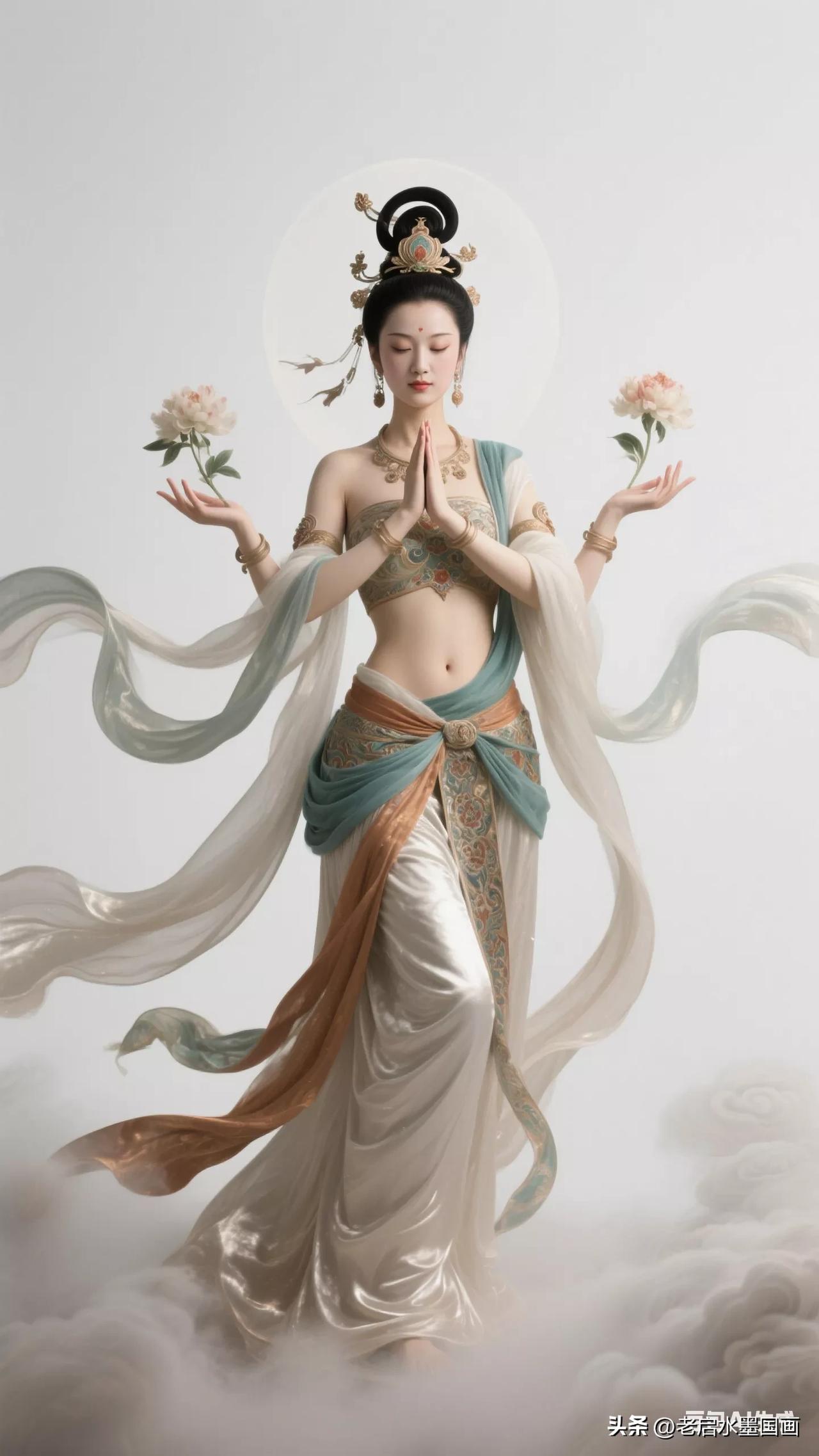 仙气飘飘的古典美人,手持莲花,宛如画中仙子。张立启原创书画AI作品古仕女发髻服饰集锦首发第694期工笔风人像 菊饰古风像 唐风牡丹妆容 新现代仕女图 ai唐妆团扇像 ai唐韵仕女照 华裳抚琴像 国色唐风写真 张立启原创书画 张立启原创书画AI作品首发