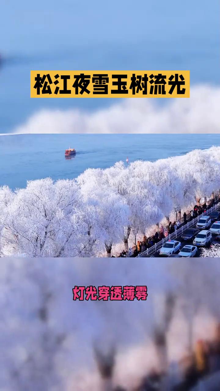 松江夜雪玉树流光。 松江夜雪玉树流光。隆冬时节的吉林市因一江不冻的松花江生出独一份的梦幻景致。当暮色漫过天际,白日里银装素裹的雾凇便与满城灯火相拥,绘就一幅璀璨动人的北国夜景。 江畔两岸灯光次第亮起,暖黄的路灯、绚丽的霓虹、楼宇间变幻的灯带层层叠叠铺洒开来。暖光落在凝满冰晶的枝头,将蓬松洁白的雾凇染得温润透亮。玉树琼枝似缀满碎钻,在夜色中泛着柔和光晕。冷色调的霓虹映在江面与水波相融,化作流动的彩练。红、蓝、紫、金交织摇曳,为清冷冬夜添上浓墨重彩的绚烂。 江雾在夜色中缓缓升腾,轻纱般裹住堤岸,将灯光晕染成朦胧光斑。远处的桥梁被灯带勾勒出优美轮廓,横跨江面如长虹卧波,灯光穿透薄雾与雾凇冰晶交相辉映。目之所及皆是银白与流光相融的盛景。脚下江水缓缓流淌,不冻的碧波承载着满城灯火,波光粼粼,与岸边玉树相映成趣。 漫步江边,雾凇簌簌轻落,灯火温柔笼罩。江风带着清冽寒意,却让人沉醉在这极致美景中。冰清玉洁的雾凇、璀璨灵动的夜景、奔流不息的松花江共同勾勒出吉林市独有的冬日夜景,清冷又繁华,静谧且璀璨。