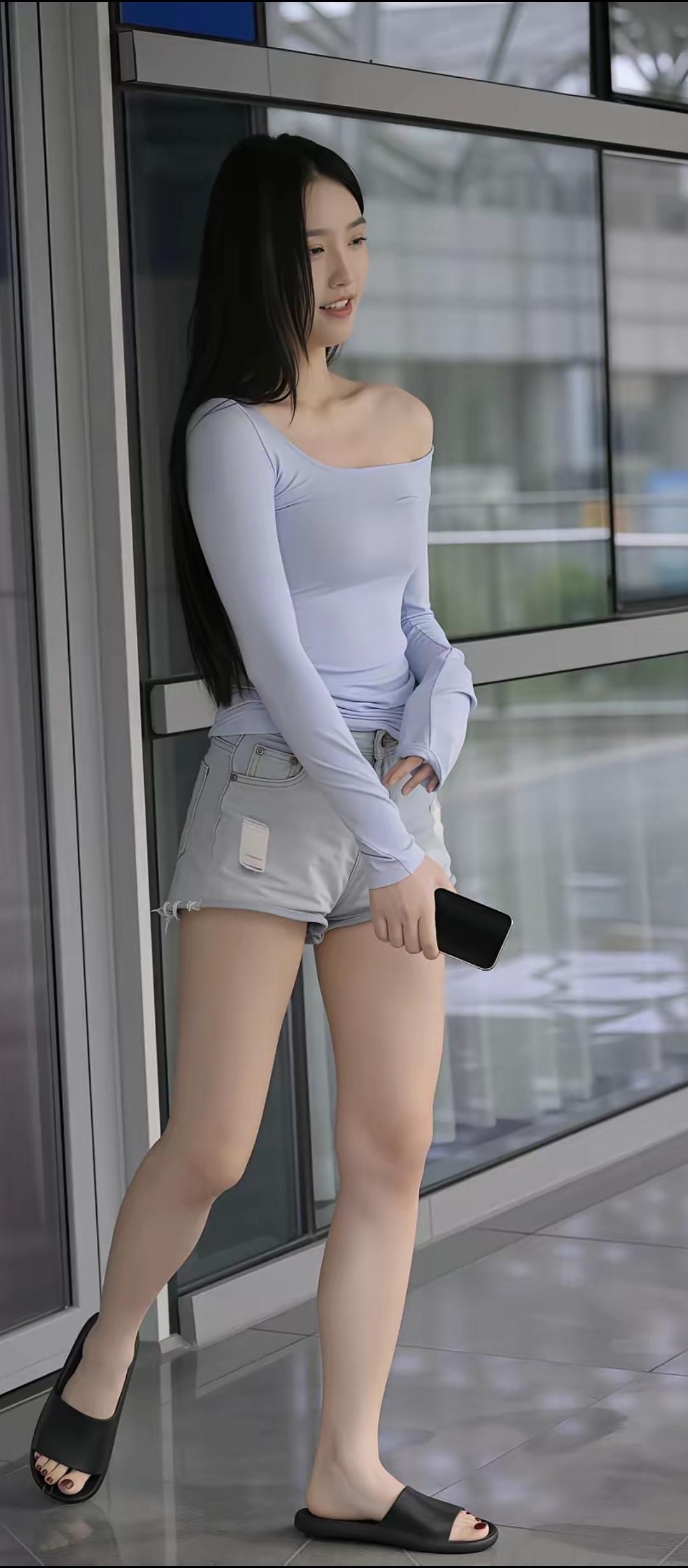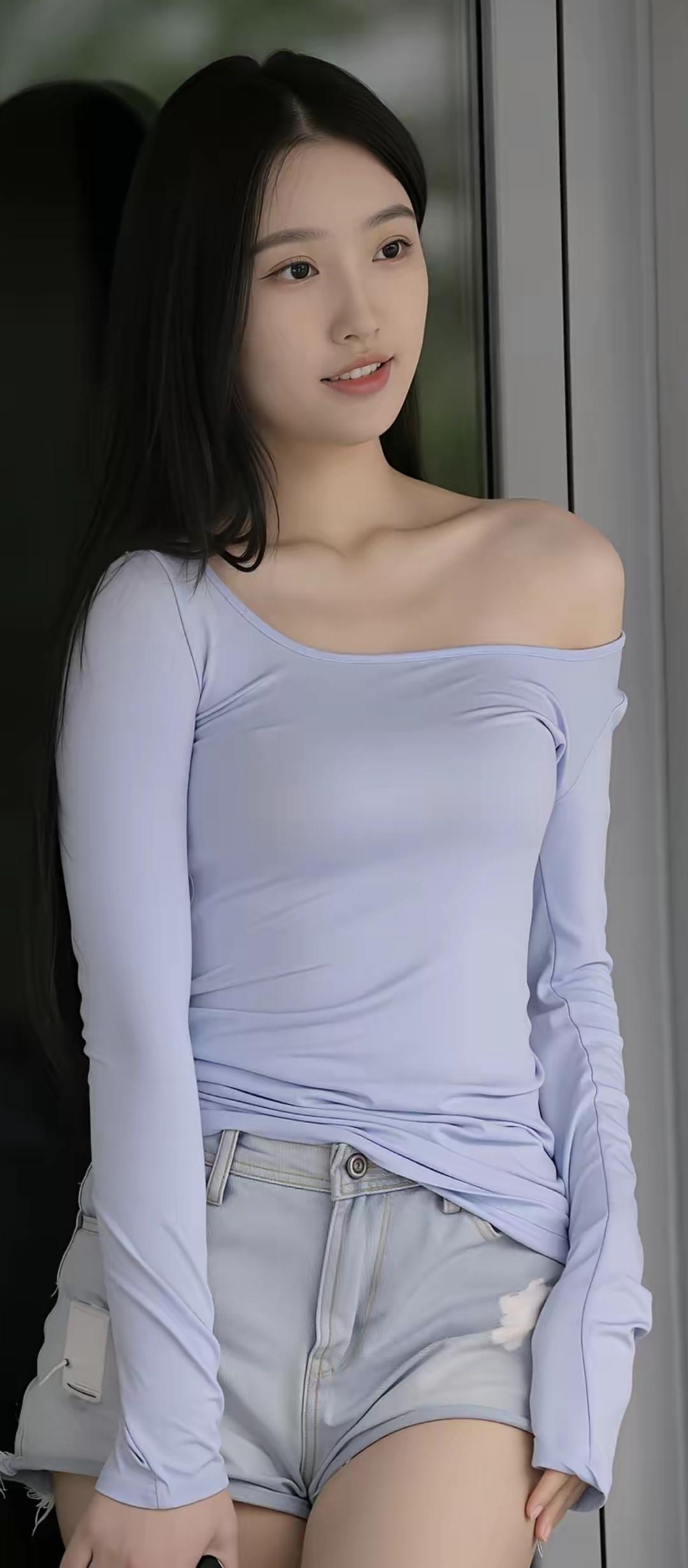 夏日穿搭指南:清新蓝调露肩上衣+牛仔短裤,轻松自在!🌞👗👖👟