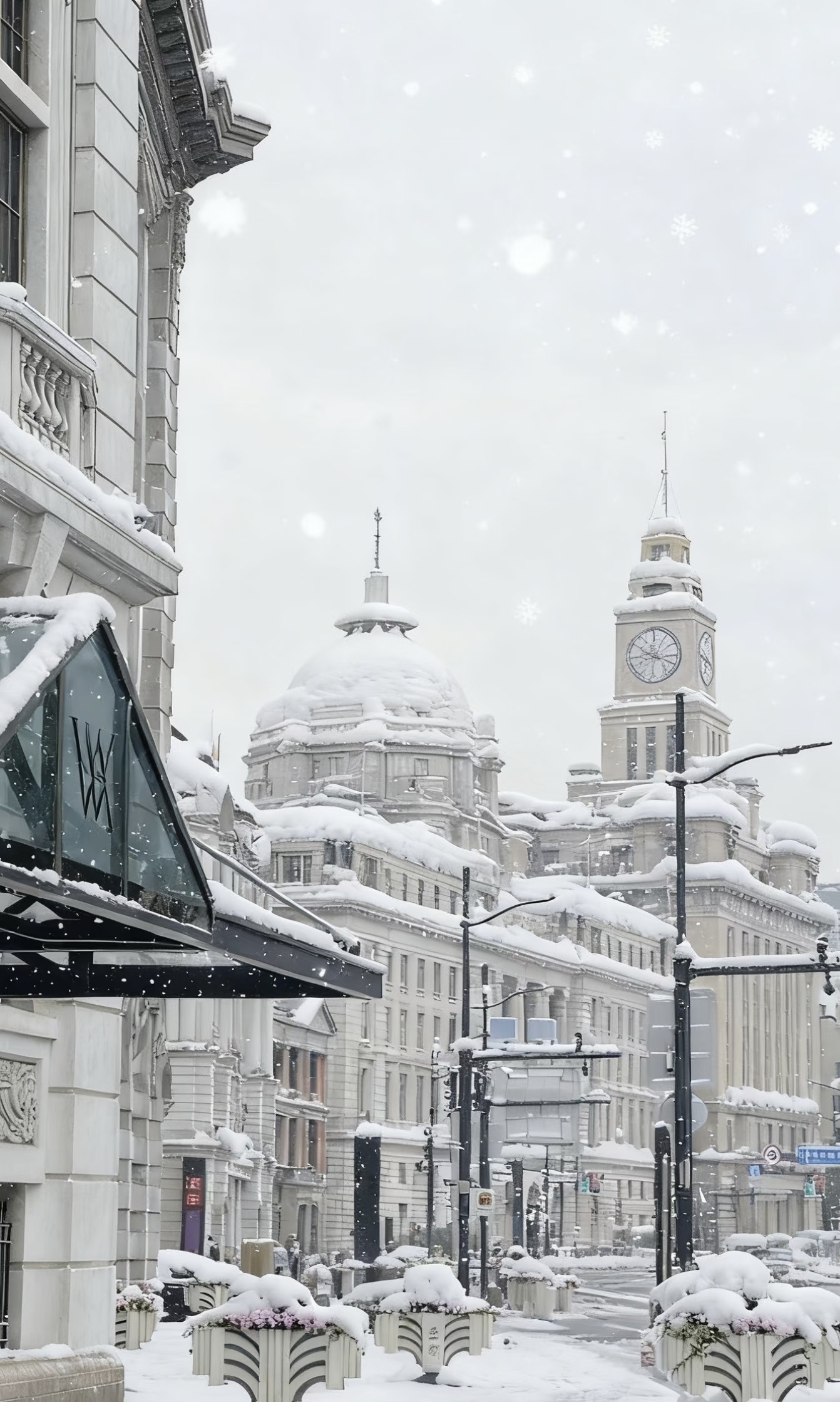 下雪的上海美得像童话❄️ (图片雪花ai 生成 可真的秒变北欧童话 ① 外滩 ②马勒别墅 ③西岸 ④上海徐家汇书院 ⑤sof garden ⑥翡悦里 ⑦天潼路上海邮政博物馆,苏州河 ⑧lv巨轮 ⑨静安寺 ⑩The berry
