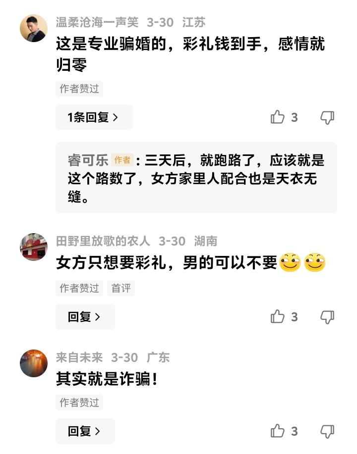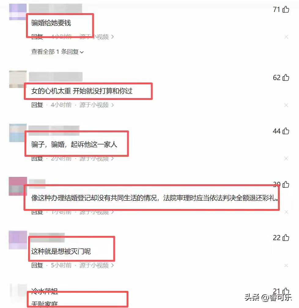 河南漯河47万天价彩礼娶回“凉菜新娘”:新婚夜不让碰,三天后借口调凉菜消失,这场婚姻是骗局还是闹剧? (来源:综合《小莉帮忙》、最高人民法院案例及网络热议) 当王先生满怀期待掀开新婚的盖头,却没想到等来的是一盆刺骨的冷水。丈母娘一个电话,以“女儿太累”为由,将洞房花烛夜变成了独守空房的煎熬。更荒唐的是,第三天回门时,新娘一句“我去调个凉菜”,竟成了这场婚姻最后的告别。 这场婚姻从一开始就布满蹊跷。一年只见七八次面,过马路牵手都被拒绝,女方总以“内向”“婚后才能亲密”搪塞。可47万彩礼一到手,所有的矜持瞬间化作冷漠。新娘消失后,女方家属反咬一口,称是王先生主动让女儿离开,甚至指责其上门威胁。 法律成了王先生最后的救命稻草。律师指出,两人未领结婚证,仅办酒席不具备法律婚姻效力。依据民法典,彩礼应当返还。但钱能追回,被践踏的尊严和破碎的期待又如何弥补?这场闹剧背后,是某些地区彩礼畸形的缩影——婚姻被明码标价,感情沦为生意。 最高法曾明确判决类似案例:结婚十几天便离家不归,20万彩礼全额返还。但法律能裁定钱财归属,却裁不透人心险恶。网友痛斥:“这就是专业骗婚团伙!”从婚前抗拒接触到婚后迅速消失,每一步都像精心设计的剧本。 更可悲的是,这场“交易”中,双方都成了受害者。王先生赌上全家积蓄,换来的却是人财两空;女方或许躲过法律制裁,却背上了终身骂名。当婚姻变成算计,感情变成筹码,谁还能相信白头偕老的誓言? 农村婚恋市场的高额彩礼,早已压垮无数家庭。有人倾家荡产娶回“新娘”,有人借婚姻之名行诈骗之实。这场闹剧撕开了传统婚俗的遮羞布:当彩礼远超承受能力,婚姻还剩几分真心? 王先生的遭遇绝非个例。从“闪婚闪离”到“骗婚产业链”,彩礼纠纷正在撕裂社会信任。法律虽能追回钱财,但预防悲剧更需要清醒认知:婚姻不是买卖,真心比彩礼更珍贵。 如今,王先生决定诉诸法律。可即便讨回47万,那段被愚弄的时光、那份对婚姻的憧憬,又该如何赎回?这场“凉菜新娘”的闹剧,留给我们的不仅是唏嘘,更是对现代婚恋观的沉重拷问。 天价彩礼 婚姻骗局