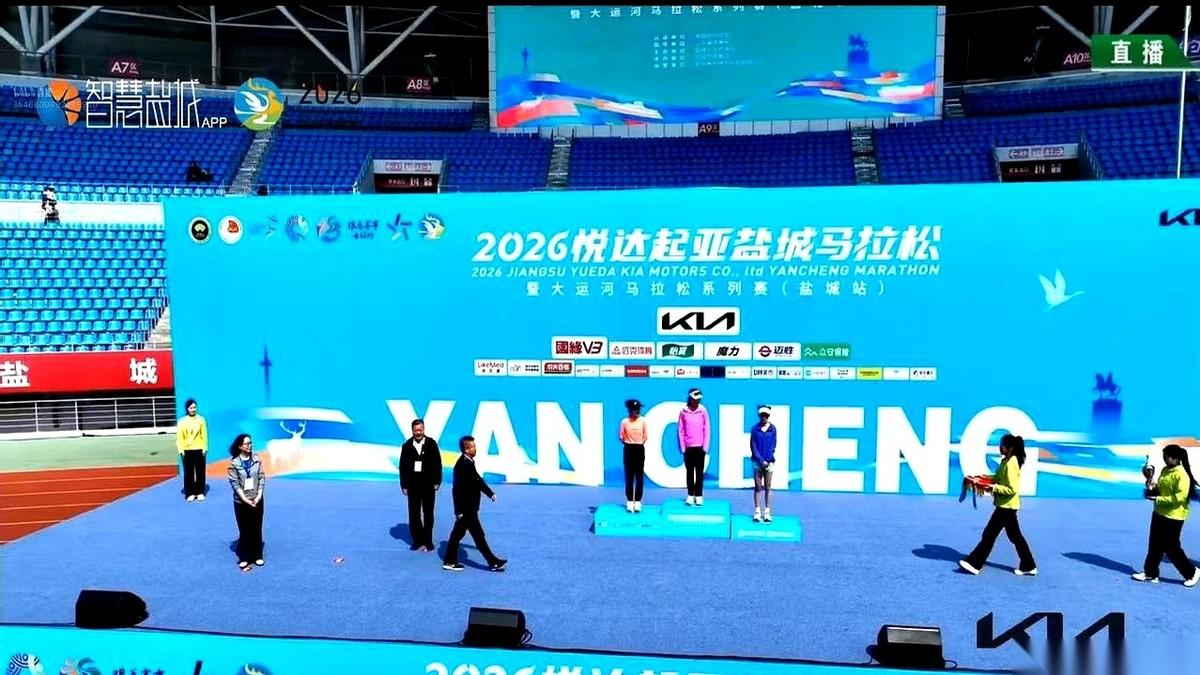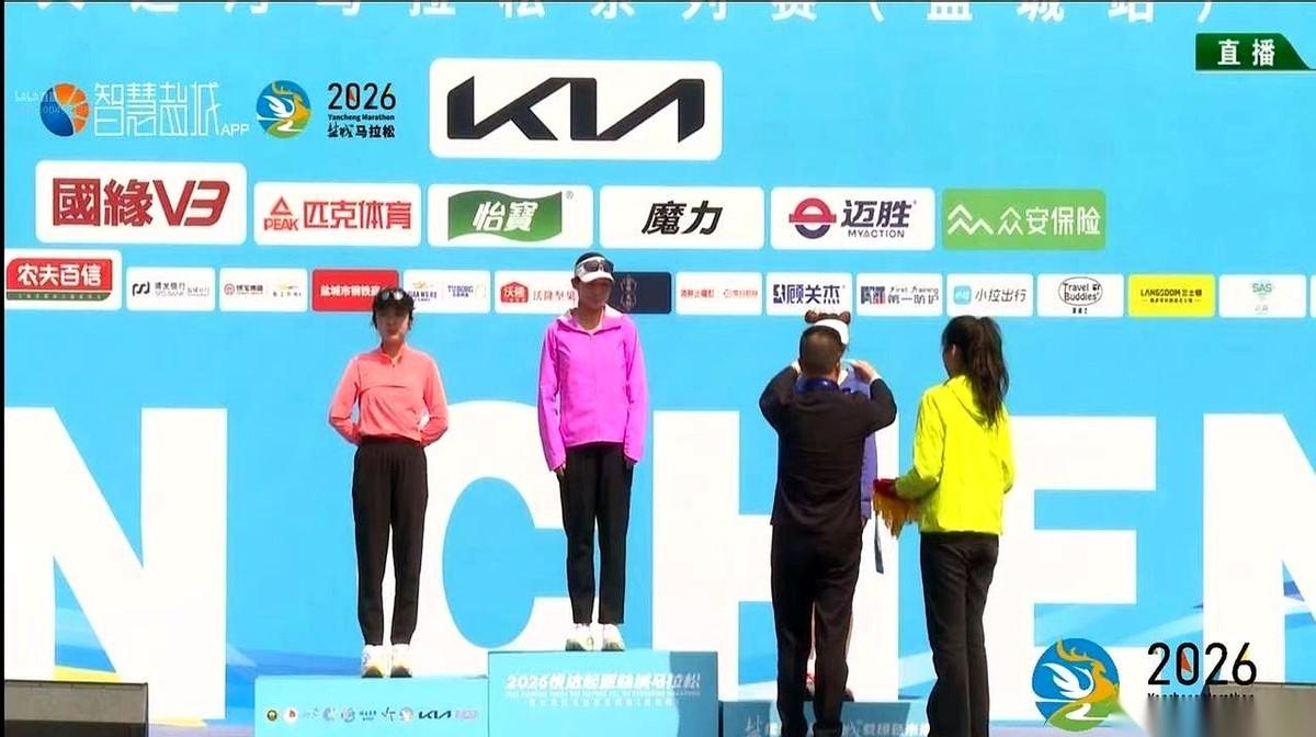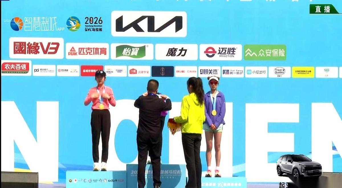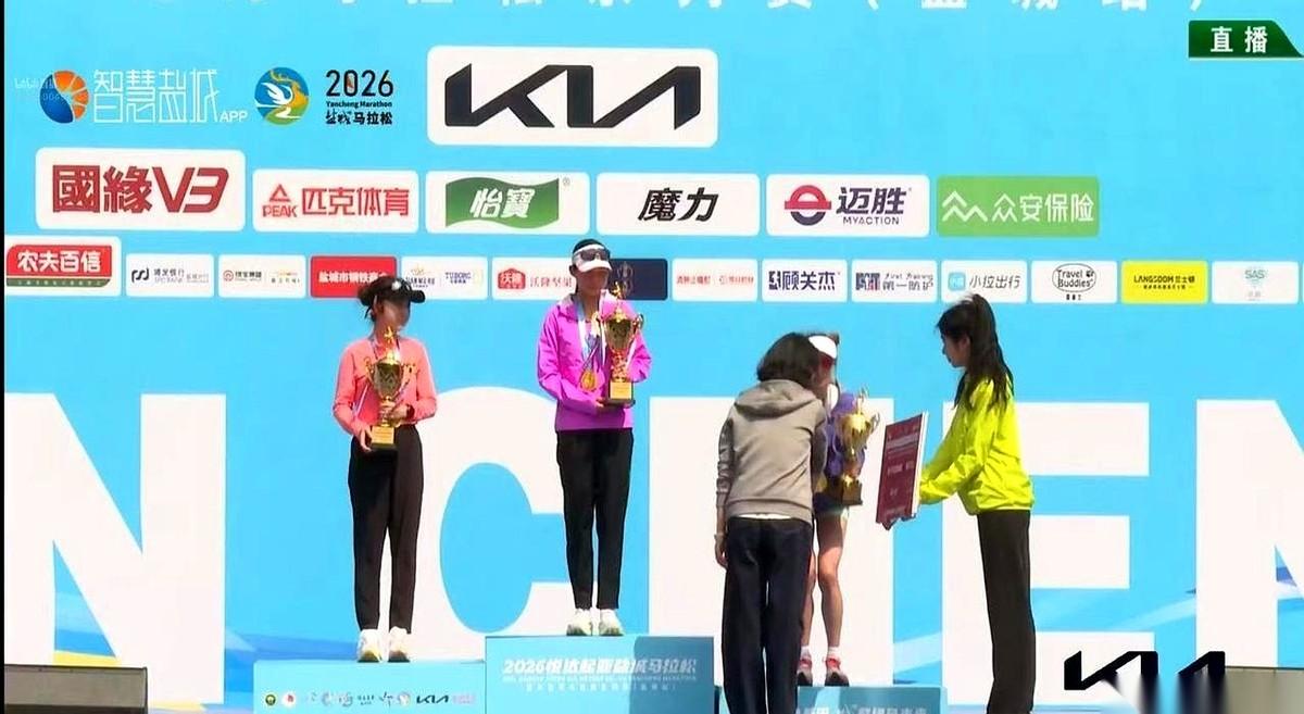 盐城马拉松的终点线,那根红色的冲刺带,在风里绷得笔直。 一个身影从赛道拐角冲了出来,速度快得像一团火。她双臂的摆动已经不是在跑步,更像是在把自己往前拽。 汗水顺着额角往下淌,根本来不及擦,眼睛死死盯着前方那块不断跳动的计时牌。 两小时三十一分零六秒。 她整个人撞过那条红线,双腿一软,差点跪在地上,全靠旁边的工作人员一把扶住,胸口剧烈地起伏,像个破了的风箱。 还没等她喘匀气,身后又一个身影冲了过来,是她的队友徐冰洁。 河南队,把冠亚军直接打包带走了。 什么叫统治力? 就是我不仅要赢,还要带着我的人,站上你们的领奖台。