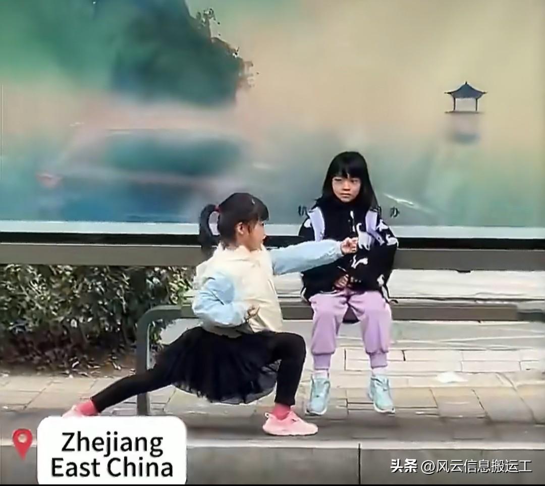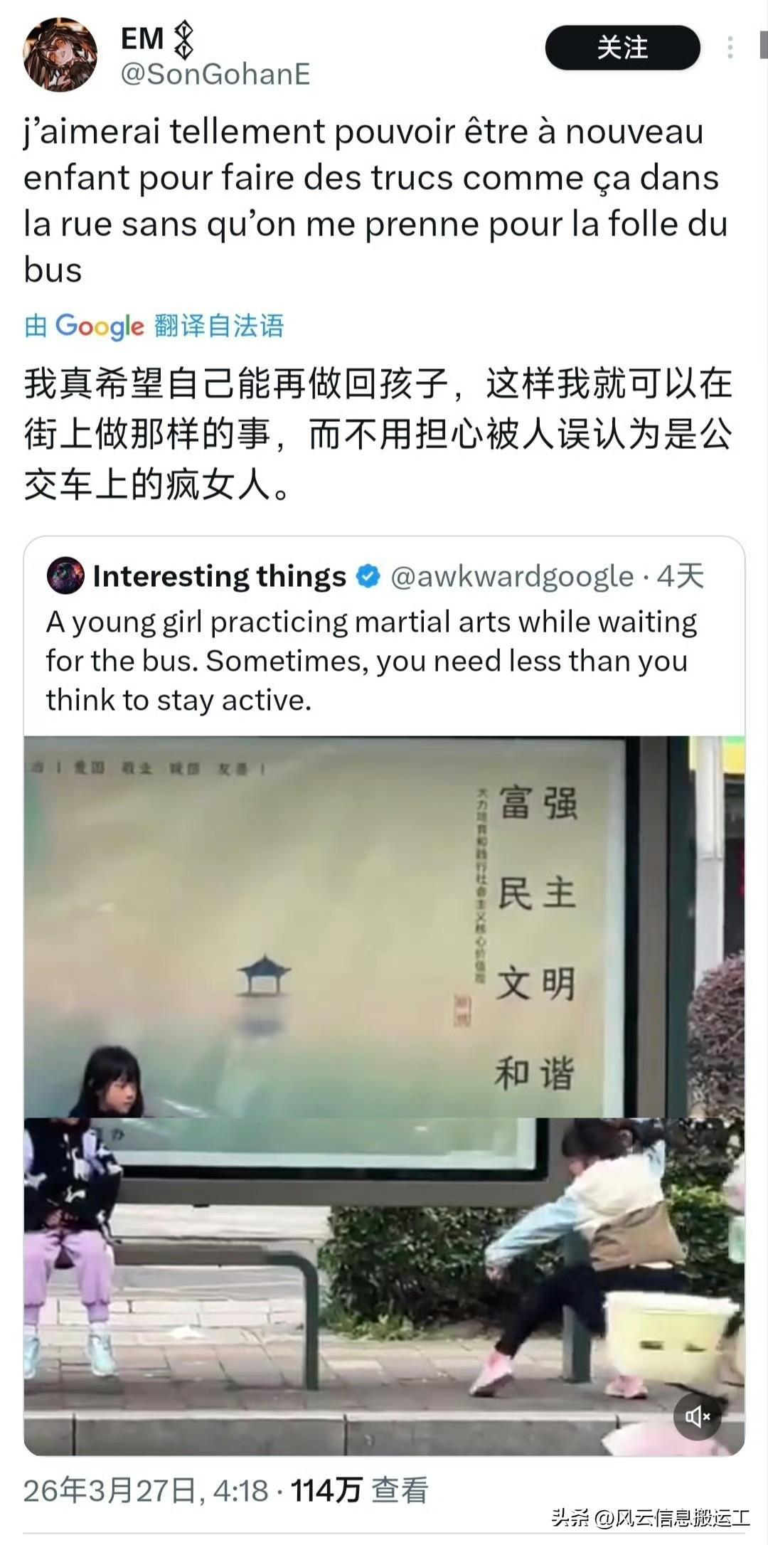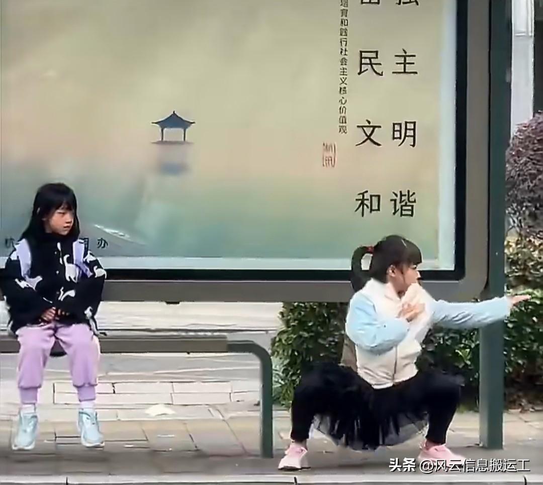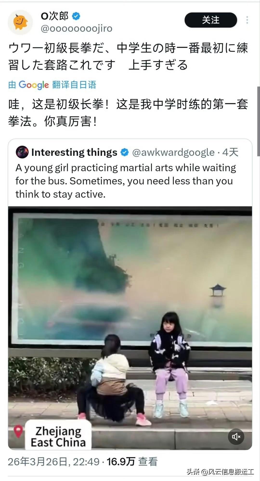 中国小女孩在公交车站练习武术的视频引起推特网友围观