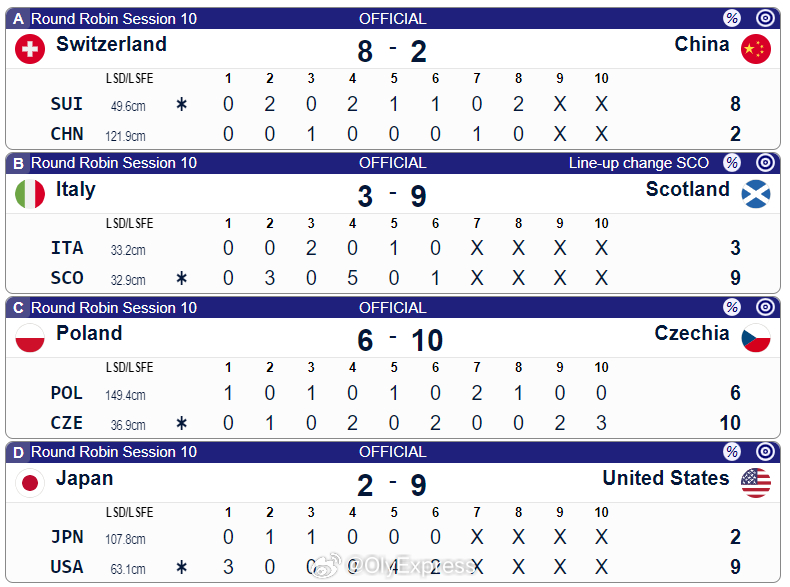 【男子冰壶世锦赛中国2-8惨败瑞士】2026男子冰壶世锦赛 3月30日美国奥格登,男子冰壶世锦赛循环赛,中国队第六场2-8惨败给瑞士,目前3胜3负并列第六。北京时间31日23时,中国队将对阵加拿大。