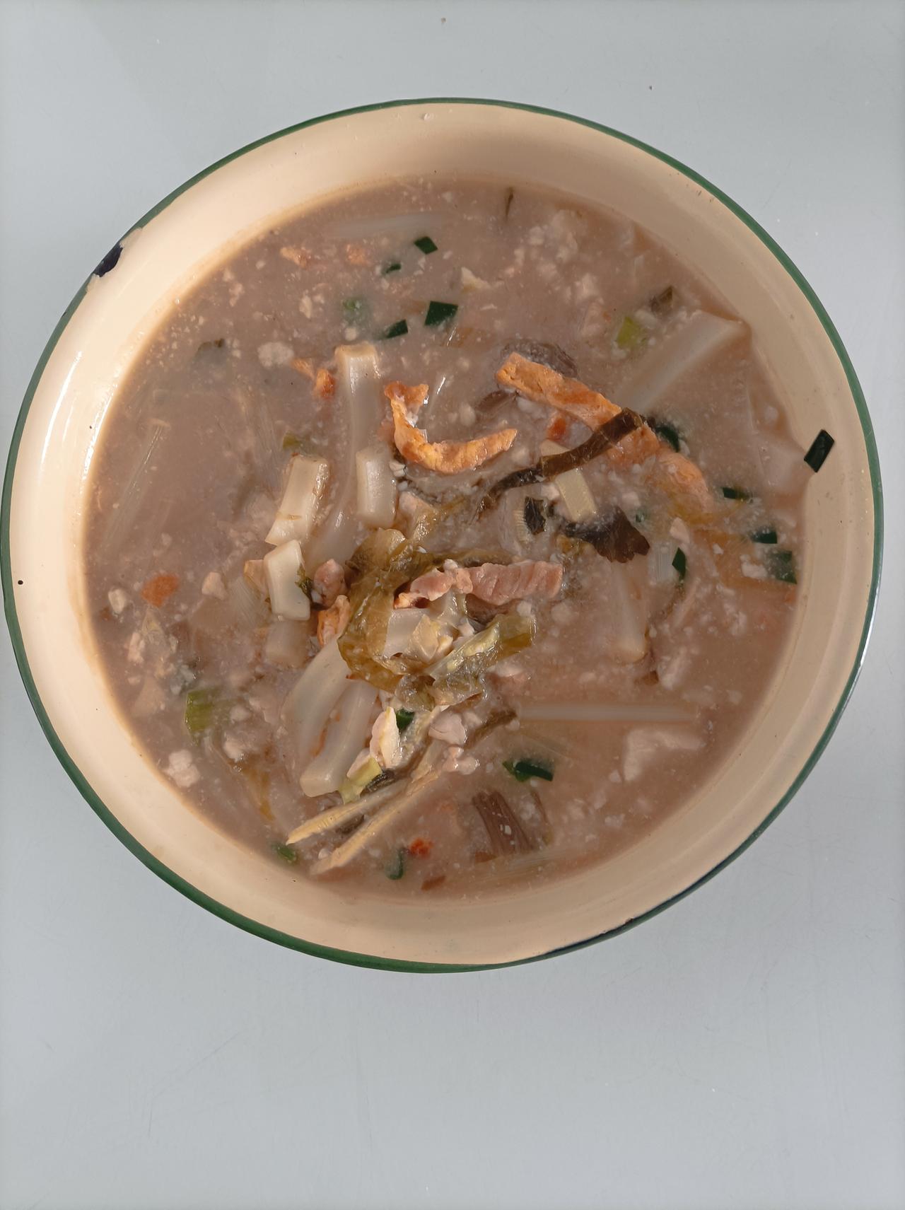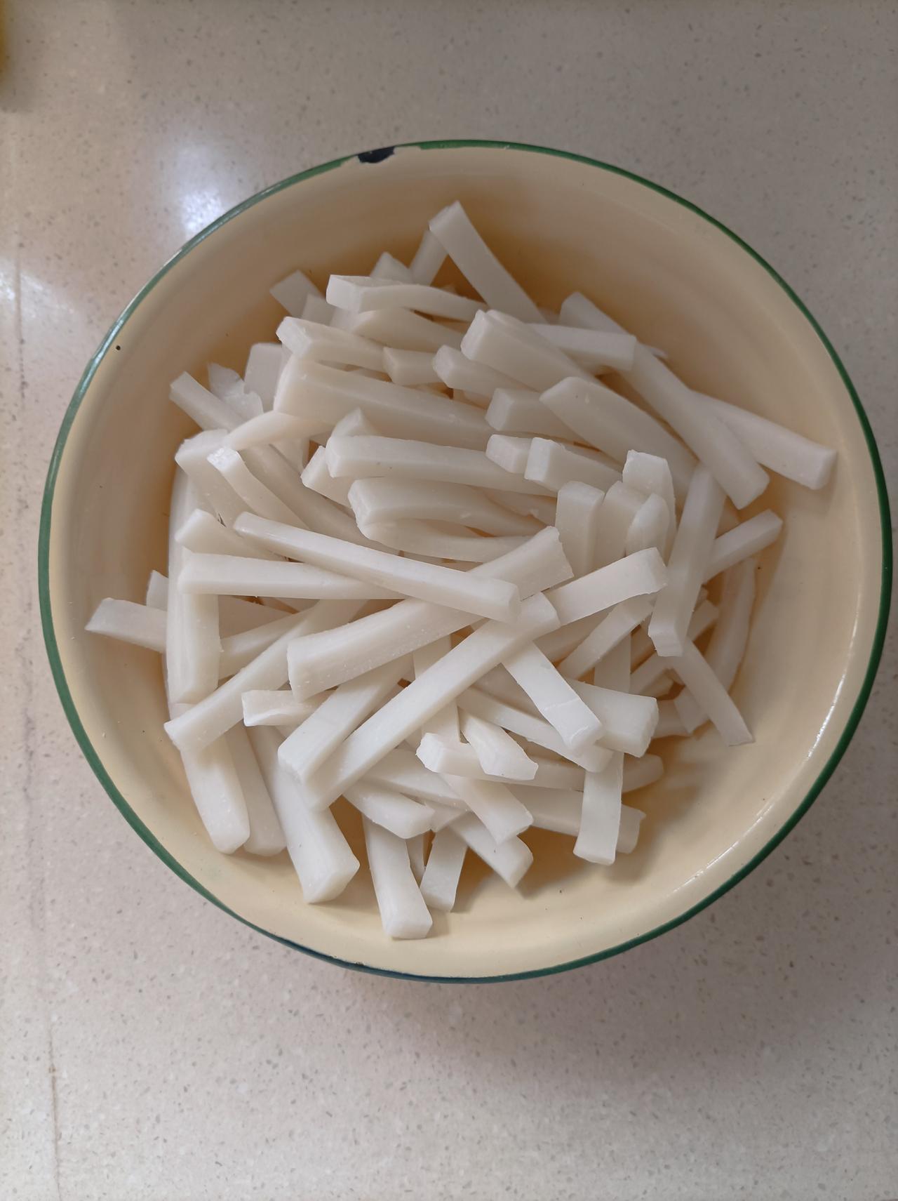 今天吃什么昨天又吃了家乡炒年糕,儿子周末买了二株春笋,再买了豆腐和肉,昨天晚上做