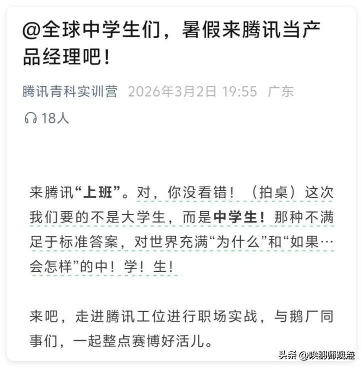 2026企业用人标准变了!当大厂开始去中学抢人,大学文凭还值钱吗? 腾讯面向中学生开放产品经理岗位,吉利让高中毕业生跳过大学直接入职。与此同时,考研人数连续三年下滑,少了131万人。大厂集体用脚投票,释放出一个残酷信号:大学教育,可能真的跟不上AI时代了。 教育专家指出,AI每三个月迭代一次,而大学教材还在用十年前的内容,知识更新速度的“剪刀差”让大学的知识传授功能大打折扣。经济学家分析,研究生毕业五年后的月收入仅比本科生高出1000元,学历溢价正在被AI归零。 历史早已给出答案:科举废除后,真正能穿越周期的从来不是一纸文凭,而是解决问题的能力。当文凭的镀金外壳被AI剥去,剩下的,才是真本事。 你觉得大学还能教出AI需要的人才吗?留言聊聊你的看法。AI新阶段 ai未来的样子 AI编程平台 AI编程方法 AI系统架构 AI时代程序员 ai会怎么样