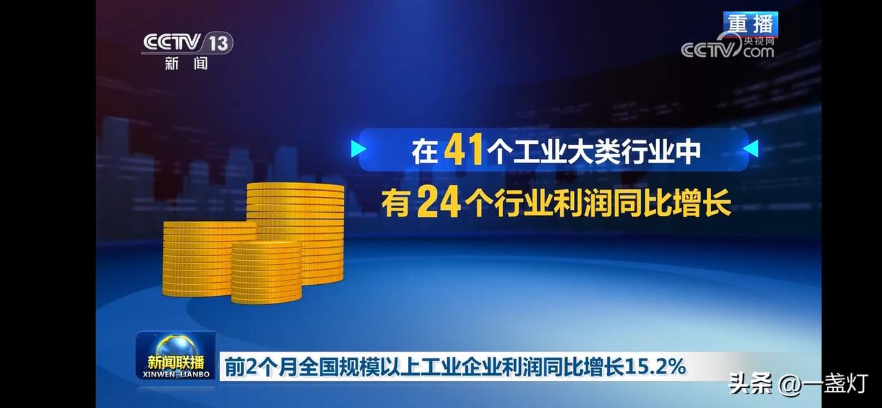 工业利润大增,24个行业行业利润同比增长。