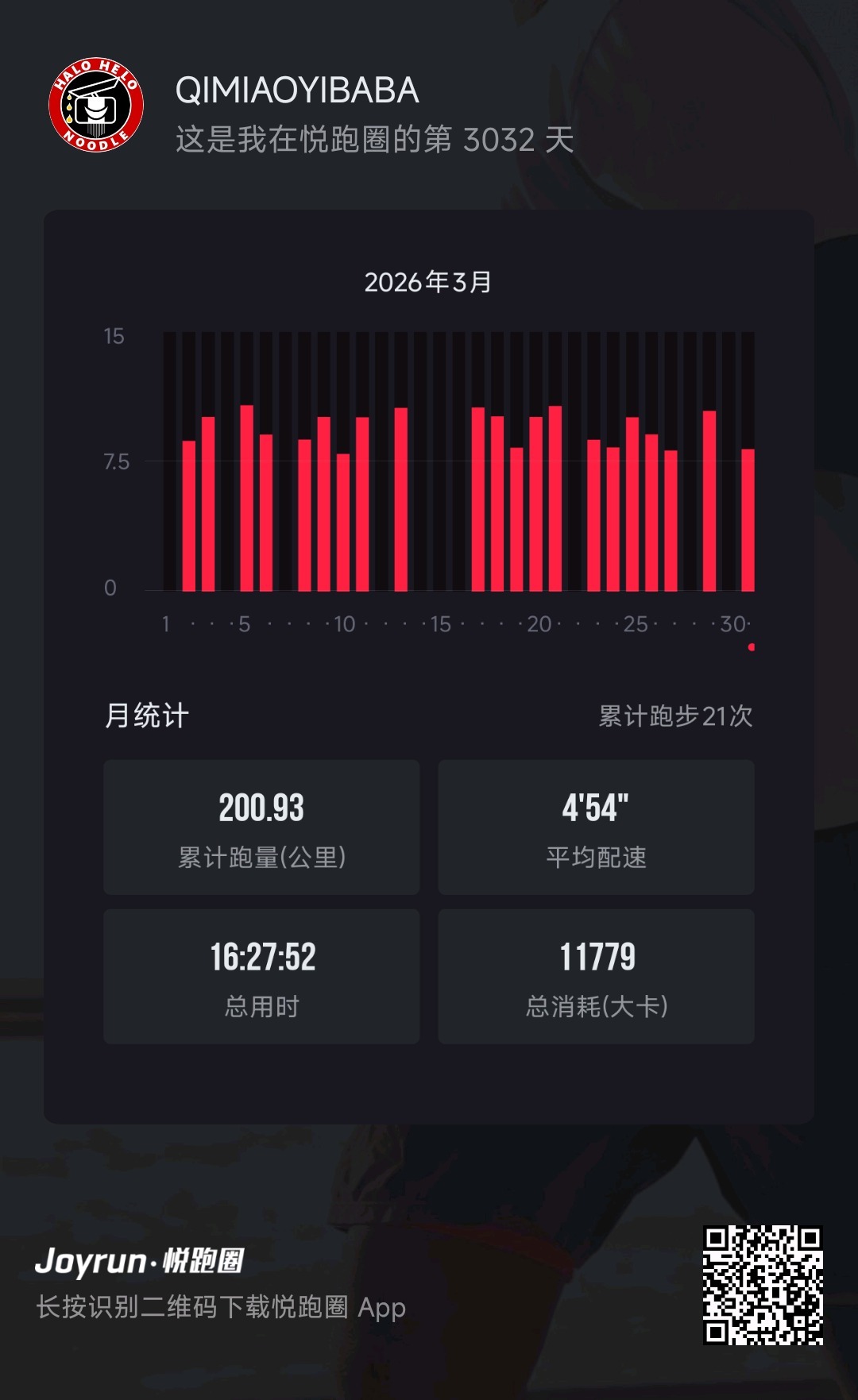 3月结束了,下雨影响,比原计划少了两天出勤,少了十多公里,不过佛系了,跑不快就慢摇,下雨就睡觉了,喝完酒第二天也睡觉了,太困第二天也睡觉了,年度目标在过年的二月拉胯情况下超额完成1%可是多雨炎热的南方夏季,接下来不乐观啊,争取吧,随缘吧