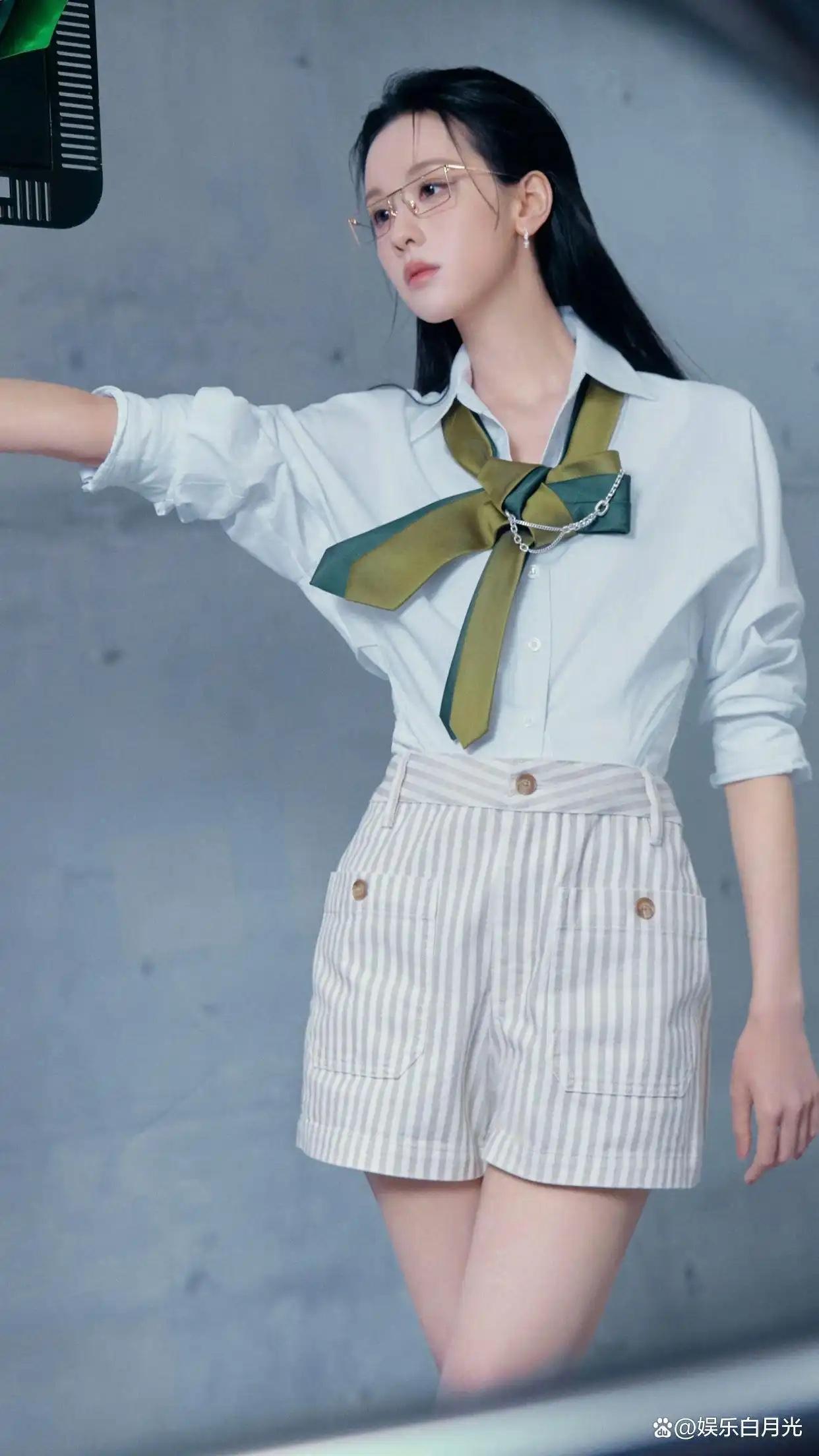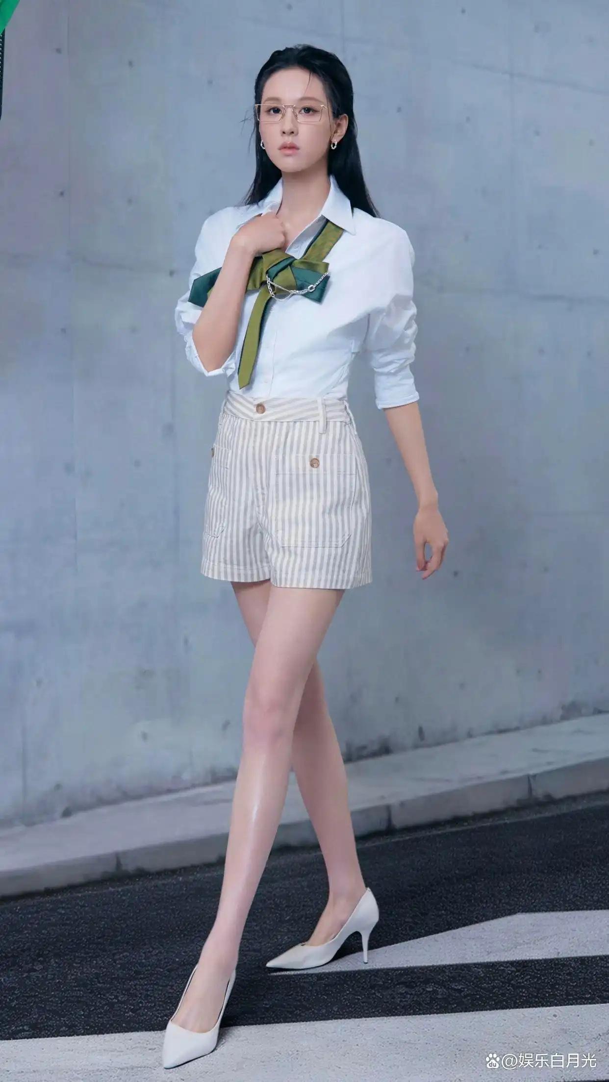 当白衬衫撞上墨绿领结,陈都灵将简约与精致揉进清水出芙蓉的诗意,举手投足间尽显“美人在骨不在皮”的清隽。灰墙为衬,素衫裹俏,玉腿生姿,每一步都似闲庭信步,把淡妆浓抹总相宜的舒展凝成一眼难忘的风情