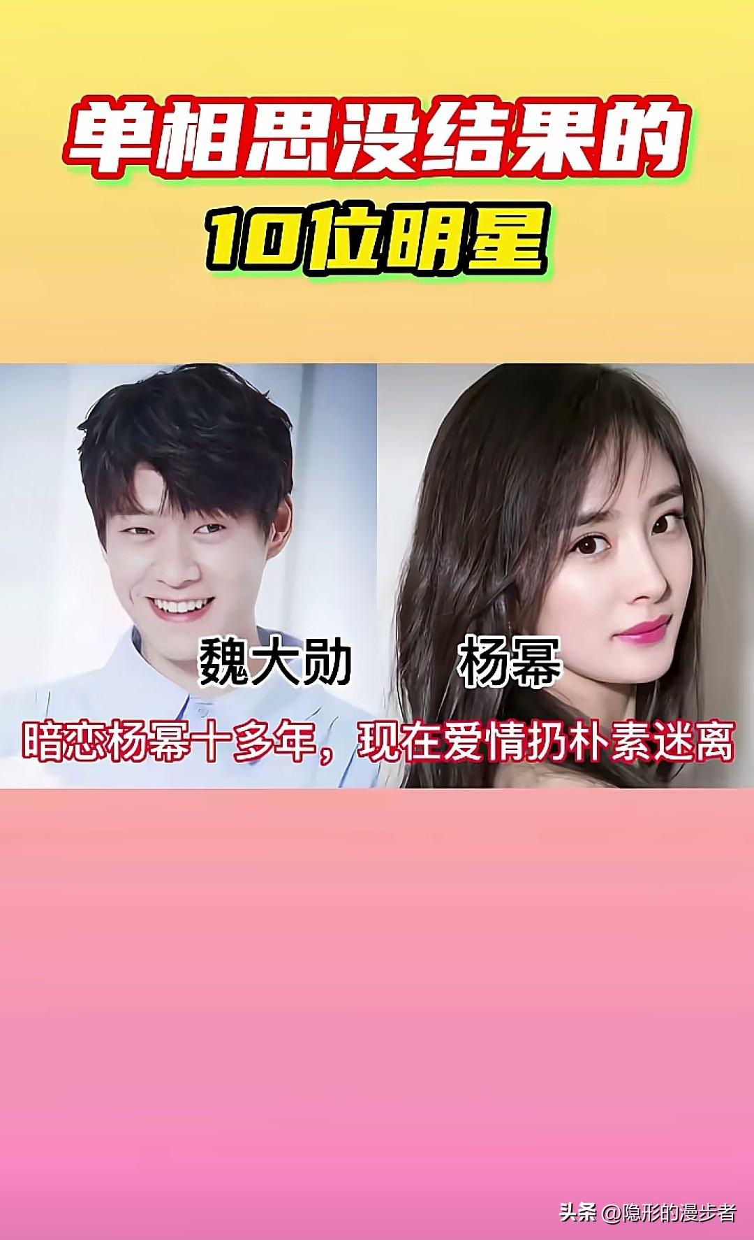 娱乐圈里藏着太多爱而不得的遗憾,那些看似遥不可及的暗恋与表白,藏着最真实的心动与心酸。 那英曾勇敢表白蔡国庆却被婉拒,魏大勋默默暗恋杨幂多年,何润东三次向孙俪示爱都无果;段奕宏暗恋陶虹十年不敢开口,林志玲把刘德华藏在心底十几年,王宝强被张柏芝的独特气质深深吸引;孙红雷暗恋巩俐五年视她为梦中情人,彭于晏单恋舒淇七年,吴昕公开示爱李晨,林俊杰苦追田馥甄十年仍被拒。 这些藏在时光里的深情,有的止于心动,有的归于遗憾,却都成了娱乐圈里最动人的意难平。