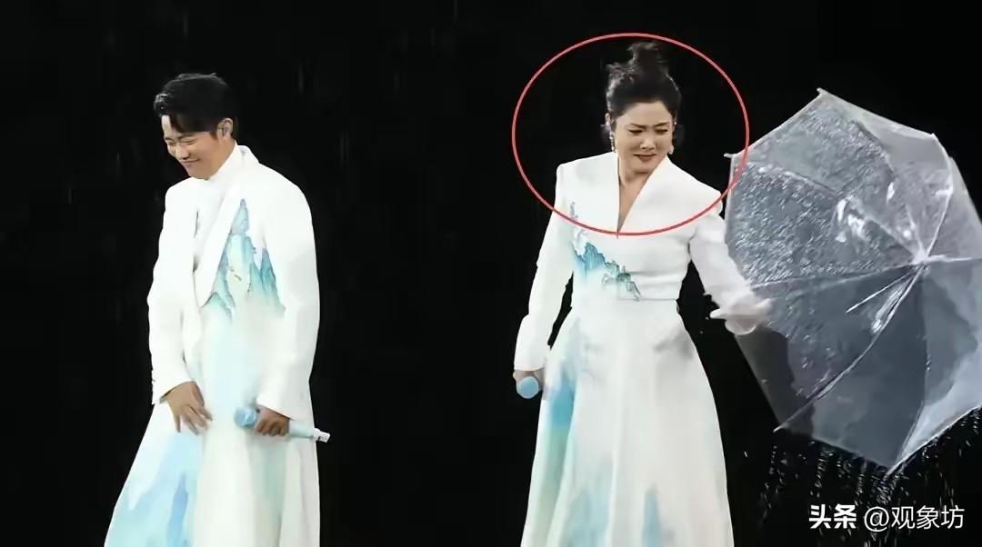 昨天,凤凰传奇的演唱会在强风暴雨中开场,当两人乘坐升降梯亮相时,本是有伞的。但曾毅为了舞台效果,耍帅般“唰”地一下把雨伞扔了。这在常人看来可能是个任性的举动,甚至会引发搭档的不满。然而,玲花的反应却令人动容——她虽然嘴上骂骂咧咧地说着“真烦”,但身体却诚实地跟着把雨伞撇了。这一小小的意外,像是一面照妖镜,照出了他们关系的本质:在关键时刻,玲花选择了与曾毅共进退,而不是独善其身。她本可以为了自己不淋雨而独自撑伞,但她没有,因为她深知凤凰传奇是一个不可分割的整体,任何破坏组合氛围的行为都是对彼此的不负责。这种大局观,这种把“我们”看得比“我”更重要的精神,在这个利己主义盛行的时代,显得尤为珍贵。