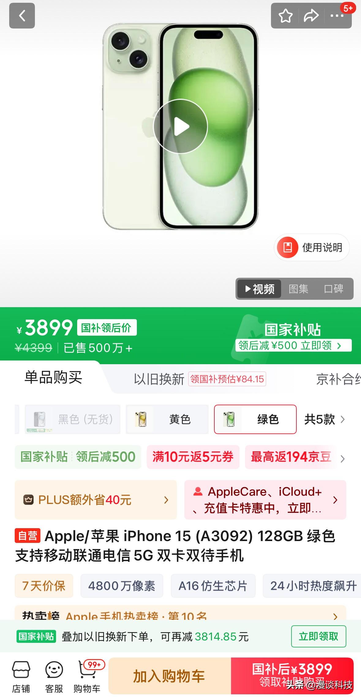 越来越觉得2月份的时候入手iPhone 15是真的香,2800元的价格买不了吃亏买不了上当,虽然是128G版本的,但拿来当备用机也是极好的。如今贵了1000多,感觉毫无性价比了,没有卖后悔药的,估计再也不会有这个价格了……