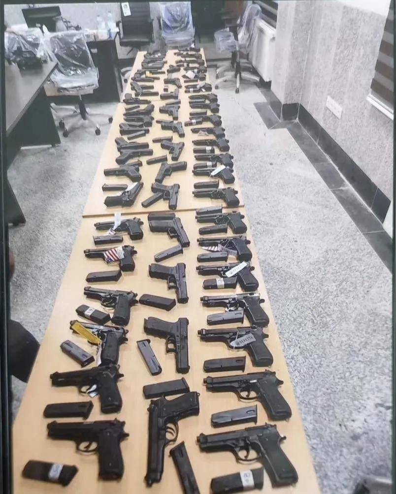 伊朗缴获的走私武器,其中手枪一大堆。这些走私武器都是伊朗情报部门在库尔德斯坦省缴