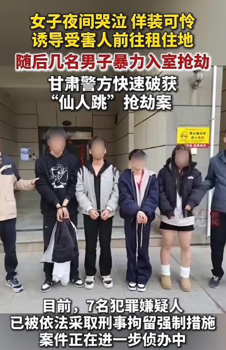 3月28日,甘肃,一小伙深夜大街上,发现一美女正在哭泣,出于好心,将她带回出租屋安慰,岂料,刚将女孩带到屋没多久,突然闯进来4名带刀的陌生男子,说小伙对女孩行不轨之事,抢走了小伙4400多块财物! 事件发生在3月11日凌晨,这名小伙平日里独自在当地打工,居住在普通的出租屋内,性格本身偏温和,平日里遇到身边人有难处都会主动搭把手,属于心软且没太多防备心的人。 当天他忙完手头的事,深夜独自走在回家的路上,路上几乎没有过往行人和车辆,整条街道显得十分冷清,他按照往常的路线匀速往出租屋走,没有任何额外的停留和举动。 走到一处街边路段时,小伙发现一名年轻女子独自站在路边,全程低着头不停哭泣,看起来情绪十分低落,没有同伴陪同,也没有做出其他异常举动。 小伙看到这一幕,单纯觉得女子孤身一人深夜在外不安全,又处于情绪崩溃的状态,出于最朴素的好心,没有多想就上前想要安抚对方,帮对方解决眼下的难处。 他没有过多打探对方的隐私,只是简单表达了想要帮忙的意愿,女子见状,顺势向小伙诉说自己的处境,称自己无处可去,也没有落脚的地方,希望能找一个暂时安静的地方平复情绪。 小伙听完之后,同情心进一步加重,便主动提出让女子跟着自己回出租屋短暂休息,等情绪稳定后再做打算,随后便带着这名陌生女子一同前往自己的出租屋,全程没有丝毫戒备,也没有留意周边是否有可疑人员尾随。 两人刚进入出租屋没多久,房门还没有完全关好,身后突然冲进来4名陌生男子,这几名男子手里都拿着刀具,进门后立刻控制住现场局面,将小伙牢牢围住,不让他有任何反抗和呼救的机会。 几名男子进门后,直接开口诬陷小伙,声称小伙对这名哭泣的女子做出了不轨之事,以此为借口逼迫小伙交出身上以及屋内的全部财物,态度十分强硬,全程用刀具威胁,不让小伙有任何辩解和反抗的余地。 小伙当时被突发的状况吓得不知所措,面对持刀的四名男子,根本没有能力反抗,只能按照对方的要求,交出身上的现金以及屋内存放的各类财物。 这伙人没有丝毫犹豫,快速搜刮完小伙的财物后,没有过多停留,立刻带着那名哭泣的女子一同离开现场,整个作案过程十分迅速,分工也格外明确,明显是提前预谋好的团伙作案。 经事后清点,小伙被抢走的现金、香烟及其他物品,总价值共计4470余元,和网传的4400多块财物基本吻合,这些钱物对于打工为生的小伙来说,是一笔不小的损失。 小伙在对方离开后,缓过神立刻拨打报警电话,向警方完整陈述了自己遭遇的全部经过,提供了事发的时间、地点以及嫌疑人的大致特征。 兰州七里河警方接到报警后,第一时间赶往现场处置,同步开展现场勘查、周边监控调取以及走访排查工作,快速锁定这是一起有组织、有预谋的“仙人跳”式抢劫案,涉案人员并非只有现场出现的五人,而是一个共计7人的犯罪团伙。 警方依托大数据研判和视频追踪,快速摸清了团伙成员的身份信息和逃窜轨迹,兵分两路展开抓捕,在案发后短短十几个小时内,就将7名犯罪嫌疑人全部抓获,无一漏网。 经审讯,7名嫌疑人对自己合谋设套、持刀抢劫的违法犯罪事实供认不讳,目前均已被警方依法刑事拘留,涉案的全部财物也被警方追回,悉数返还给了受害小伙,案件后续还在进一步依法侦办中。 这件事被警方通报和媒体报道后,迅速引发了大量网友的关注和讨论,评论区的留言大多贴合现实,说出了普通人的心声。 有网友直言,善良本身没有错,但一定要带点锋芒,深夜遇到陌生的可怜人,绝对不能轻易往家里带,好心反而会害了自己。 也有网友表示,现在很多坏人专门利用普通人的同情心设圈套,看似柔弱的求助,背后可能就是陷阱,遇事一定要先留个心眼。 还有网友感慨,这名小伙就是太单纯太心软,才掉进了别人精心布好的局,幸好警方破案快,不然损失和风险都难以预估。 整件事从发生到告破,全程都在提醒每一个普通人,身处复杂的社会环境中,心存善意是好事,但绝对不能盲目善良、毫无防备。 尤其是在深夜、偏僻路段等特殊场景,面对陌生人员的求助,哪怕对方看起来格外可怜,也不能轻易放松警惕,更不能将陌生人带回自己的住所,避免给不法分子可乘之机。 遇到类似情况,最稳妥的方式是及时报警,由专业人员出面处理,既不会辜负自己的善心,也能最大程度保障自身的人身安全和财产安全,不要让自己的善意,变成伤害自己的利器。 大家遇到过类似的街头求助情况吗?如果是你,遇到深夜哭泣的陌生女子,会选择怎么处理?欢迎在评论区留下你的看法和应对方式。