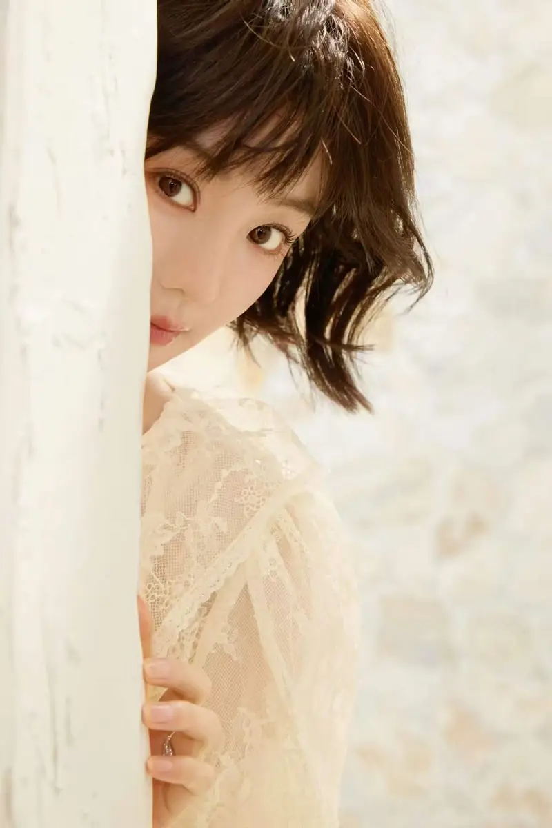 胡意旋穿蕾丝裙装娇俏元气 短发清甜鬼马灵动