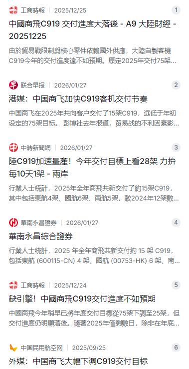 美国这一刀捅的可真够狠!一刀直插C919命脉,中国引以为傲的商飞C919客机,交付目标被“打骨折”,背后“捣鬼之人”便是美国。 麻烦看官老爷们右上角点击一下“关注”,既方便您进行讨论和分享,又能给您带来不一样的参与感,感谢您的支持! 2025年初,中国商飞曾雄心勃勃地定下一年交付75架C919的目标,相当于每五天就有一架国产大飞机下线交付,信心十足。可到了年底一看数据,全年实际只交付了15架,还不到目标的零头,用“打骨折”来形容一点不夸张。这背后真正捅刀子的,就是美国政府。要说美国这一刀捅得有多准,看看数据就知道了:商飞年初高调宣布年产75架的计划,年中扛不住只能下修到25架,结果到了12月23日,全年只交付了14架,最终全年定格在15架,离75架的豪言壮语差了十万八千里。三大航原本满心欢喜等着接收32架新飞机,结果年底一盘点,总共只拿到13架。 问题出在哪?核心就在于发动机。C919目前唯一能用的发动机,是美国通用电气和法国赛峰集团合资的CFM国际生产的LEAP-1C。2025年5月,美国商务部突然宣布暂停对华出口LEAP-1C发动机及相关技术的许可证,摆明了就是要卡C919的脖子。路透社和《纽约时报》当时都报道了这件事,美方表面理由是审查“具有战略意义的出口”,但谁都知道,这跟稀土出口管制有关,更是要遏制中国高端制造业崛起。 这刀落下去,后果立竿见影。发动机一断供,C919的浦东总装线直接面临停产危机,因为发动机是飞机的心脏,没有它,机身造得再好也飞不起来。商飞的生产排期被彻底打乱,零部件要么卡在港口审批环节动弹不得,要么供货节奏被刻意放缓,整个供应链陷入混乱。有消息说,商飞总装线因此停摆了大约35天,才等来后续供应的恢复。要知道,对于正在冲刺规模化量产的大飞机项目来说,一个多月的停产损失难以估量。 所幸到了2025年7月初,美国又悄悄松了口,通知GE航空航天恢复对商飞的发动机出口,禁令在维持约两个月后解除。有分析认为,这跟北京方面在稀土出口管制上做出让步有关,双方在贸易博弈中各退一步。但禁令解除归解除,供应链已经受了重创,生产节奏完全被打乱,前面落下的进度根本追不回来。更何况美方的策略压根不是一刀砍死,而是搞间歇性的脉冲式卡脖子——时不时让你难受一下,零部件审批在港口无限期拖延,发货节奏完全脱离正常商业逻辑,这种人为制造的不确定性才是最大的麻烦。 美国为什么要对C919下死手?答案很简单,C919瞄准的就是波音737和空客A320这个全球最赚钱的单通道客机市场。过去几十年,这个市场一直被波音和空客垄断,两家公司占了全球九成以上的份额,谁进来都是找死。但C919不一样,它有中国庞大的国内市场做后盾,上千架的订单储备,再加上波音这几年安全事故频发、品牌信誉受损,C919的商业前景越来越被看好。美国急了,想通过切断发动机供应链,在C919还没规模化量产之前就把它的势头摁下去,给波音争取喘息的时间。只不过,这种算盘打得太精,反而可能适得其反。 美国的这一刀,最大的意外后果是逼出了中国自己的航空发动机。CJ-1000A长江发动机的研发,其实早在C919立项之初就同步启动了,但它原本只是远期备用方案,优先级并不高。美方这一卡脖子,瞬间把这个备用方案的优先级提到了最高,研发进度被全面加速。截至2025年底,CJ-1000A累计完成了6142小时的极限测试,覆盖高原、结冰、鸟撞、高寒等全场景极端工况。这款发动机最大推力达到13.5吨,涡轮前温度突破1500℃,油耗比进口的LEAP-1C还低7%,在低温启动和防冰控制等关键性能上表现相当稳定。可以说,该过的关基本都过了,硬指标已经达标。 进入2026年,CJ-1000A的进展更加明确。据中国航发商发与中国商飞的规划,2026年二季度力争拿到中国民航局的型号合格证,最快三季度实现首架装机交付,2027年启动批量装机。这意味着C919很快就能摆脱进口发动机的束缚,真正拥有一颗完完全全的中国心脏。更重要的是,CJ-1000A一旦批量装机,C919的产能瓶颈将被一次性打开。业内预测,换装国产发动机后,C919的年产能可以迅速拉升到50到70架的区间,上海临港的第二总装厂也在预留适配产线,2027年满产后将支撑年产150架的目标。发动机占整机成本的25%左右,国产化之后不仅是供应链安全的问题,更是成本控制和运营自主权的实质性提升。