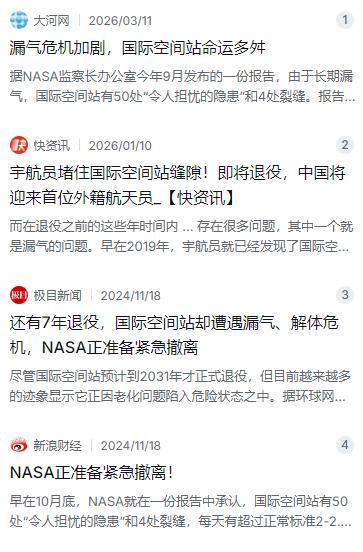 为什么大家都不提中国空间站了?没脸提,跟国际空间站差距太大,但不是中国空间站拿不出手。 麻烦看官老爷们右上角点击一下“关注”,既方便您进行讨论和分享,又能给您带来不一样的参与感,感谢您的支持! 前几年铺天盖地都是“天宫”空间站的消息,什么航天员太空授课、机械臂抓飞船,热搜一个接一个。可到了最近,好像大家都不怎么提这茬了。有人甚至开始阴阳怪气,说什么“中国空间站拿不出手了”“跟国际空间站差距太大了”。但事实真是这样吗?别急着下结论,我们扒一扒背后的门道就知道了。 先来说说那个所谓的“老大哥”——国际空间站。这玩意儿从上世纪90年代末就开始搭建,第一个舱段“曙光号”是1998年发射的。按照当初的设计寿命,它早就该退役了,硬是靠“打补丁”撑到了现在,超期服役快十年了。现在这老伙计的日子可不好过,天天漏气。 早在2019年,宇航员就发现俄罗斯“星辰”号服务舱的某个隧道在往外跑气,NASA的监察长办公室后来专门发了个报告,说空间站有50处“令人担忧的隐患”和4处裂缝,每天的空气泄漏量超过正常标准0.9到1.1公斤。今年4月最夸张的时候,一天就漏了将近1.7公斤。为了以防万一,NASA甚至提前在“龙”飞船上加装了临时座椅,一旦情况失控就准备紧急撤人。你可能觉得漏点气没啥,但在几百公里高的真空环境里,舱压失衡那可是要命的大事。现在连NASA自己的风险评估都把它列成了最高级,用了一个词来形容——“灾难性”。这哪里是什么太空骄傲,简直就是一个悬在头顶的定时炸弹。 反过头来看中国这边。当初为了搞自己的空间站,咱们可是吃尽了苦头。美国在2011年搞了个“沃尔夫条款”,直接把中国排除在国际空间站的大门之外,逼得咱们只能走自主研发的道路。结果呢?逼出了一个从里到外100%自主可控的天宫空间站。你仔细去查查数据就知道了,天和核心舱的新技术、新产品占比超过90%,核心元器件完全实现了国产化。这意味着什么?意味着从每一颗螺丝钉到最核心的飞控系统,全部都是咱们自己设计制造的,谁也卡不了脖子。 更让西方眼红的是那套“黑科技”——再生式生命保障系统。这玩意儿说白了就是在太空里搞循环经济。航天员呼出的二氧化碳、甚至排出的尿液,经过一系列复杂的物理化学反应,直接变回饮用水和氧气。根据中国航天员科研训练中心的数据,这套系统已经实现了氧气100%再生,水资源再生率超过95%。你要知道,每往太空送一公斤水,成本差不多上万美金。现在有了这套系统,每年光物资补给就能省下6吨的运力。去年中国还在空间站里搞了个“地外人工光合作用”试验,在国际上首次在轨实现了高效的二氧化碳转换和氧气再生,这技术连科幻片都不敢这么写。 那么问题来了,天宫空间站明明这么牛,为什么西方主流媒体几乎没什么动静呢?道理其实很简单——因为没流量啊。你翻翻那些西方大媒体的科技版块就知道了,他们报道新闻的逻辑是“不出事就不算事”。国际空间站今天漏气、明天裂缝、后天又要紧急撤离,三天两头曝出大新闻,媒体当然蜂拥而至。可中国空间站从建造到运营,每一步都稳如老狗,核心舱“天和”在轨运行4年多,不仅状态稳定,还在不断功能升级,具备延寿到15年的能力。没有事故、没有故障、没有戏剧性的波折,这帮媒体就算想报,也不知道报什么好。 偶尔他们想找茬,结果也是翻车现场。之前有人在社交媒体上拿一张2021年“天宫课堂”的截图大做文章,说“航天员面前杯子里的水怎么没飘起来?中国空间站造假!”结果德国航空航天中心的专家直接出来辟谣,说那其实是表面张力在微重力环境下的正常表现,还夸中国空间站的实验很严谨。还有美媒跳出来指责中国空间站“全中文界面不利于国际合作”,但明眼人都知道,国际空间站以前用英语和俄语也没见他们说过“不公平”,这纯粹是吃不到葡萄说葡萄酸。 别忘了,还有一个更扎心的事实摆在眼前。国际空间站已经确定要在2030年左右正式退役了。别看俄罗斯和美国最近达成了共识说至少撑到2028年,但所有人都清楚,那副老骨头已经快散架了。一旦它退役,在很长一段时间内,咱们的天宫空间站将成为近地轨道上唯一在轨运行的大型载人太空平台。 更让人感慨的是,中国并没有像当年某些国家封锁我们一样关上大门。去年咱们和巴基斯坦签署了合作协议,巴方航天员很快就要以载荷专家身份进驻天宫执行短期飞行任务。欧洲航天局的宇航员为了能参与任务,早早就开始苦练中文。这才是大国该有的格局——你当年对我爱答不理,如今我用实力让你心服口服,并且还愿意带你一起玩。