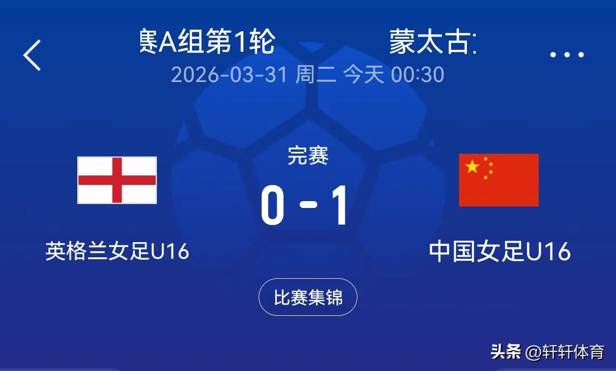 真是年龄越小实力越恐怖,在今天凌晨结束的法国蒙太古杯A组首回合比赛中,中国U16女足对阵英格兰U16女足,虽然我们成年队与英格兰实力相差悬殊,中国女足已经被英格兰拉开很大差距,但是我们U16的小队员们,可谓是初生牛犊不怕虎,今天凌晨的比赛中国女足占尽场上优势,要不是临门一脚把握机会不太好,今天的比分也许就不是1-0了,今天的比赛中国女足全场压制英格兰女足,但是上半场中国女足是得势不得分,下半场经过人员调整后在比赛进行到第69分钟,中国女足前场直塞给朱派淅创造单刀机会,朱派淅把握住了单刀机会打进全场唯一进球,中国女足U16将在4月2日对阵东道主法国U16女足,以及4月4日对阵小组赛最后一场的对手墨西哥U16女足。