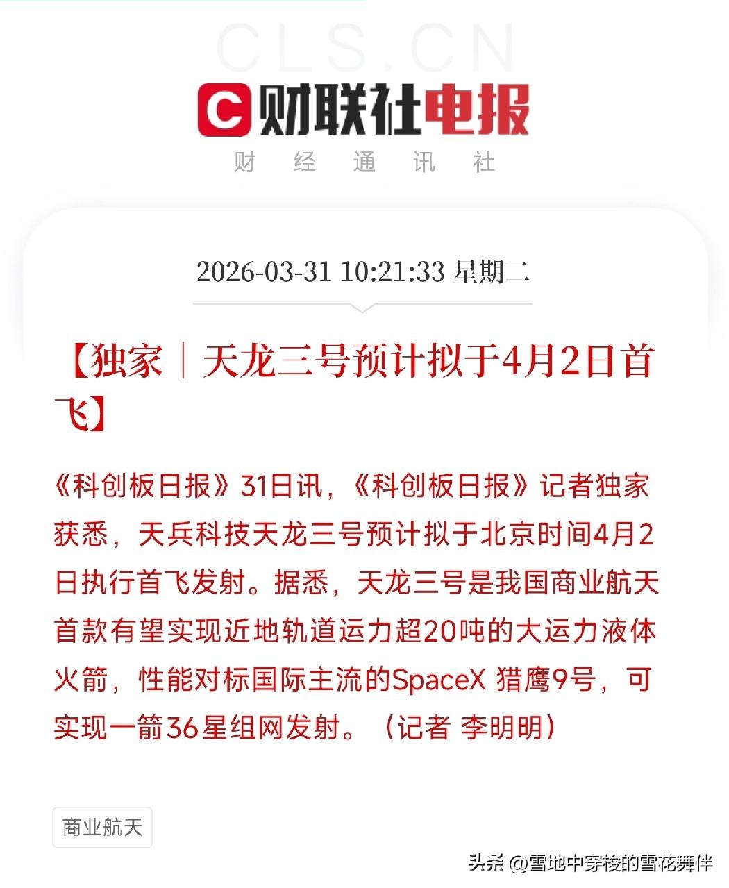 空中重卡!长鹰-8大型货运无人机首飞成功,对标猎鹰9号的火箭,天龙三号火箭也要来了! 早上刷到两条消息,都是硬货。 一条是长鹰-8大型货运无人机首飞成功。在郑州上街机场,280米就拉起来了,稳稳当当飞了半小时,精准着陆。这是全球首飞的最大货运无人机,载重3.5吨,相当于一辆小卡车的运力。 另一条是天龙三号火箭,预计4月2日首飞。这是我国商业航天首款近地轨道运力超20吨的大运力液体火箭,性能对标SpaceX的猎鹰9号,能一箭36星组网发射。 一架无人空中重卡,一枚中国版猎鹰9号,同一天刷屏,这不是巧合,是中国硬科技在扎堆亮肌肉。 长鹰-8:能拉货的无人机 3.5吨载重是什么概念?一辆普通面包车也就拉个一两吨。这玩意儿能拉三吨半,还能垂直起降?不,是滑跑起降,280米就能起飞,对场地要求不高。 以前无人机送快递,送个几百克的包裹还行。现在能拉几吨货,物流行业的天花板直接被掀开了。偏远山区、海岛、边防,路不好走的地方,以前靠卡车要绕半天,现在无人机直线飞过去,几个小时就到。 而且全程智能系统主导,人工只监控。这意味着未来可以大规模组网运营,不需要每个飞机配一个飞行员。成本降下来,物流效率提上去。 天龙三号:对标猎鹰9号 商业航天这两年火得不行。但之前的火箭,运力大多在几吨到十几吨。天龙三号一上来就20吨+,直接对标猎鹰9号。 猎鹰9号是SpaceX的当家花旦,可回收、低成本、高频率发射。天龙三号如果能成功首飞,意味着中国商业航天也有了“重卡级”的运载工具。 一箭36星,一次发射就能把一个小型星座送上轨道。以后低轨卫星互联网、遥感卫星组网,成本会大幅下降。这对航天产业、对通信产业、对军事应用,都是质变。 为什么是现在 这两件事放在一起看,背后的逻辑很清晰——中国正在从有人向无人、从小运力向大运力全面升级。 无人机赛道,从大疆的小型机,到长鹰-8这种大型货运机,再到未来可能出现的载人无人机,技术路线一步步往上走。商业航天赛道,从几吨的小火箭,到20吨的中大型火箭,再到可回收技术,也是同样的逻辑。 技术成熟了,市场需求也来了。物流、通信、遥感、应急,这些领域对“无人”和“航天”的需求正在爆发。有需求,就有投入;有投入,就有产出。 对普通人的影响 你可能觉得这些离自己很远,其实不然。 长鹰-8如果大规模商用,以后你在网上买的东西,可能从发货到收货只要几个小时。不是同城,是跨省。无人机直接从仓库飞到你家附近的起降点,比快递车快得多。 天龙三号如果成功,以后低轨卫星互联网会更便宜。你在偏远地区、在海上、在飞机上,都能用上高速网络。不是现在的4G、5G,是卫星直连。 这两件事,都是把不可能变成可能的节点。 就这些吧。