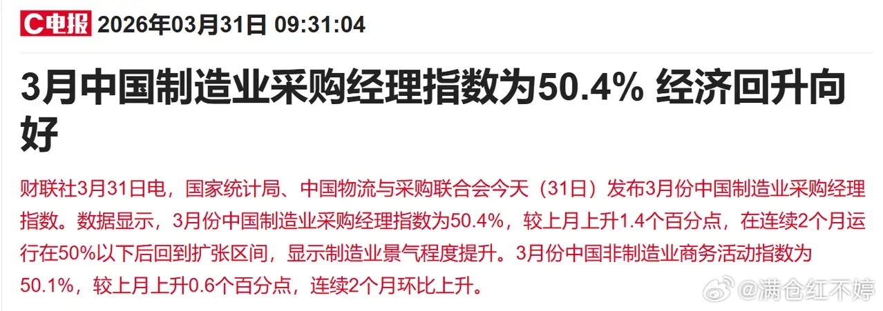 二是3月份中国制造业PMI数据为50.4%,在连续两个月低于50%之后,3月份制造业景气度开始回暖。制造业PMI数据的回暖代表经济复苏依旧在稳步推进,这是A股内在韧性增强最大的底气,尤其是中东局势引发全球经济担忧的背景下,我们的经济景气度回暖,股市本身就应该抗跌和走强。