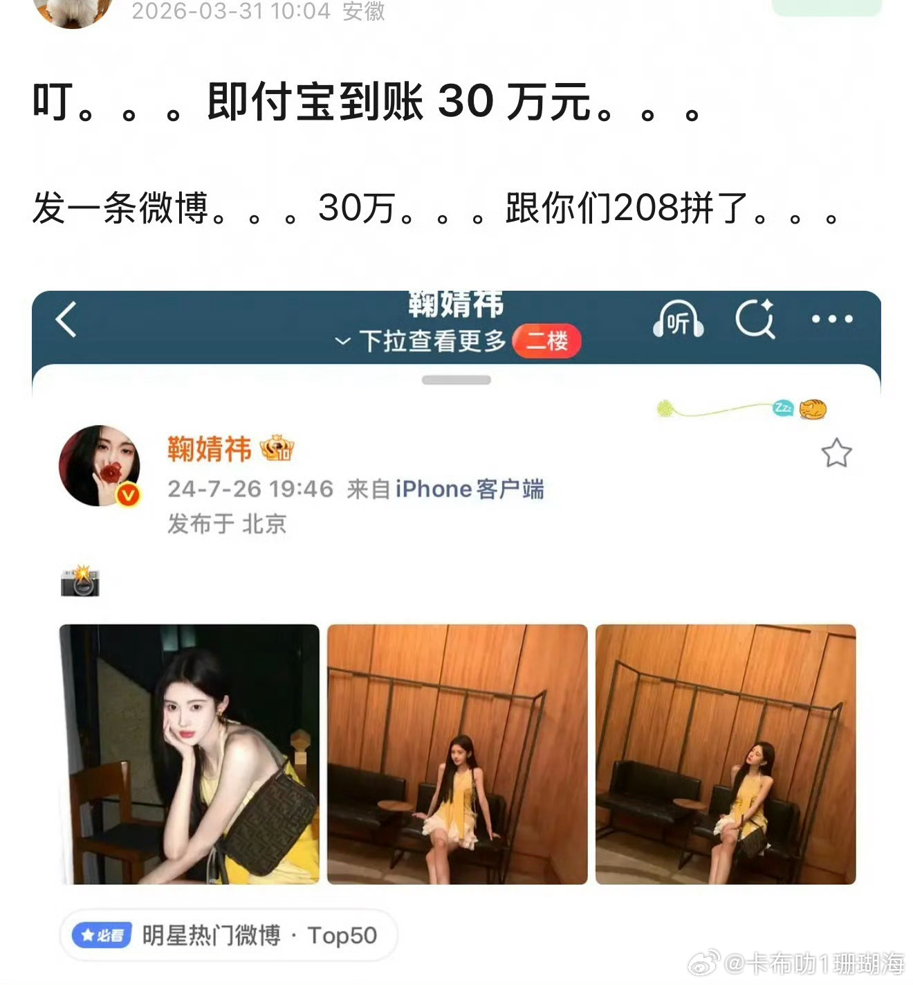 鞠婧祎这条3张图的微博,价值30w,拍月灵居然片酬这么高,杂志也真赚钱,原来明星