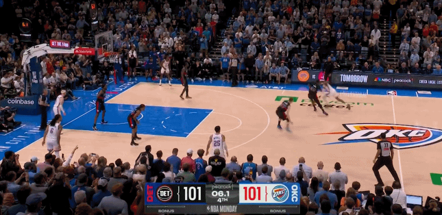 戏剧性一幕:亚历山大最后一攻被吹进攻推人犯规,比赛进入加时了。