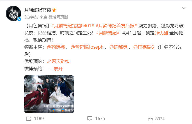 月鳞绮纪终于定档了 《月鳞绮纪》终于定档了盼了这么久终于要开播了,就问谁不激动