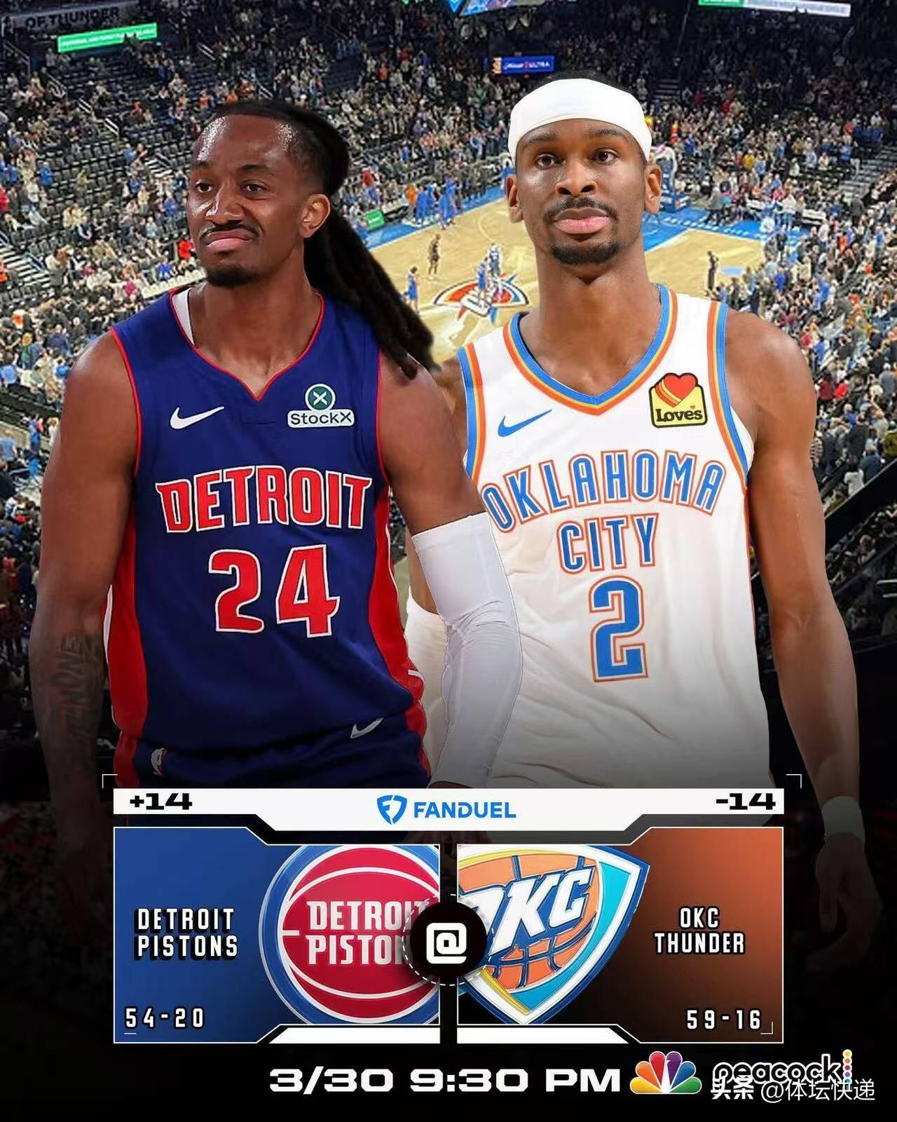 NBA东西部榜首对决活塞加时惜败雷霆。赛前分析,活塞两大当家球员缺阵,比赛将呈现一边倒的态势。比赛开始,剧情确实如料,但活塞下半场开始发力,没有让比分扩大,并在第四节两度将比分反超。随后雷霆再次将比分反超,比赛只剩32秒,双方战成101平。亚历山大准绝杀高炮台被吹掉,随后双方没有建树,进入加时赛。加时赛雷霆把握住了机会,以114:110艰难战胜活塞。活塞也以实力彰显了东部榜首实至名归!!!