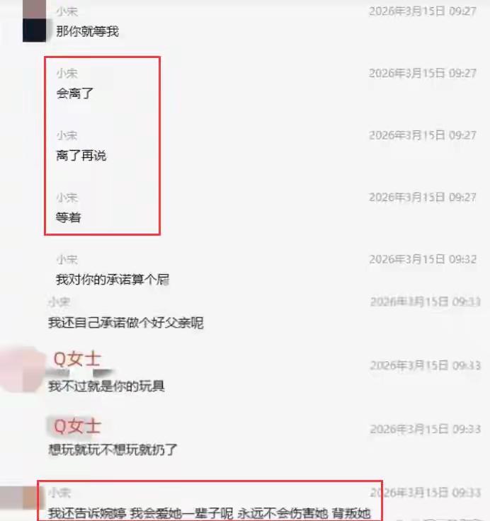太离谱!宋宁峰被曝带女儿出轨,妻子扬言要发女方裸照 3月最后一天,宋宁峰又炸出毁三观大瓜! 被曝婚内出轨还带着女儿私会,妻子张婉婷更是放话要发女方裸照,这到底是怎么回事呢? 原来,宋宁峰是齐溪的前夫,和张婉婷认识一个月就闪婚, 俩人还一起上过两季《再见爱人》,吵归吵,二胎都生了,不少人还以为他俩关系早就缓和了。 结果没想到,宋宁峰早在去年1月,就在酒局上认识了Q女士, 一边哄着家里的老婆,一边用“会离婚”的承诺骗女方,发展了不正当关系。 更毁三观的是,他竟然还带着自己的女儿去和Q女士私会, 甚至当着孩子的面做出格的事,事后自己也承认做错了、后悔了。 事情败露后,宋宁峰先让女方咬死“只是聊天”帮他圆谎, 转头就翻脸不认人,说之前的离婚承诺“算个屁”。 妻子张婉婷得知后,更是直接找上女方, 闹得不可开交,还扬言要把女方的私密裸照发给她的家人。 最后女方不堪其扰,直接把所有聊天记录、音频全爆了出来, 锤得明明白白,目前宋宁峰还没做出任何回应。 只能说刚凭《老舅》翻红,就自己把路人缘败光了, 婚内出轨本就无底线,带着孩子做这种事,更是让人无法理解。 你们觉得这事离谱吗?当着孩子的面做这种事,配当父母吗?